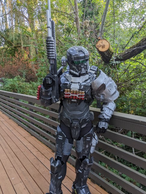 Tommorrow I'm going to put the whole thing on and walk around for a while. All that's left is just detailing/weathering and it will be con ready!