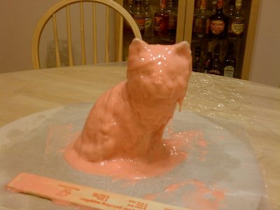 I'm EXTREMELY nervous about this right now. I didn't make a big enough batch of silicone, and I didn't work it fast enough. I mixed a second batch, but clumps of the still-curing first batch mixed with the second, and the results are shown above. Should I be worried, or is this okay? Also, getting the silicone into the flanges at the back was a terrible ordeal... I pushed some in with a paintbrush, but I'm afraid I've either scratched up the clay (not a big deal) or created some air pockets (which could be a big deal). I know this stuff is relatively self-leveling, but it just looks so messy right now, and I'm starting to freak out.