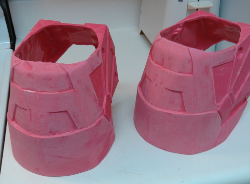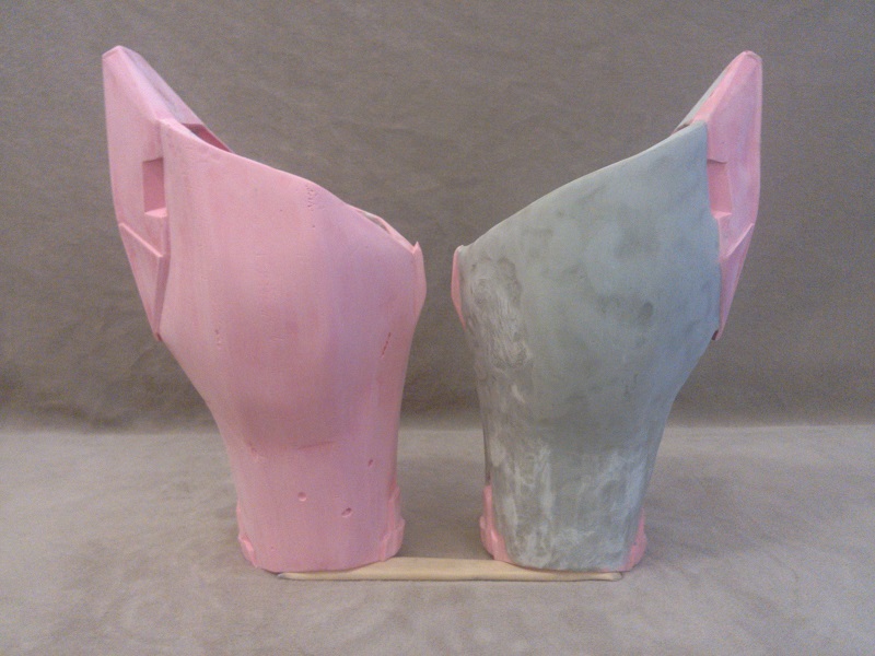 Here are the shins that I am working on. The back and side curved shapes have been smoothed out (no sanding yet), and a few of the sharp inner corners have gotten the fillet treatment. I’m sure this will get a bit more attention down the road, but for now this is as far as I am taking them.