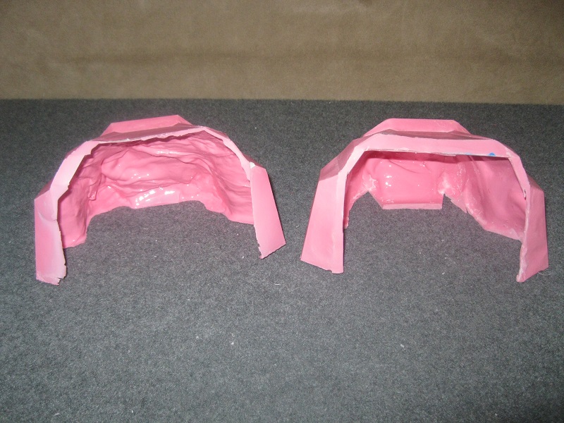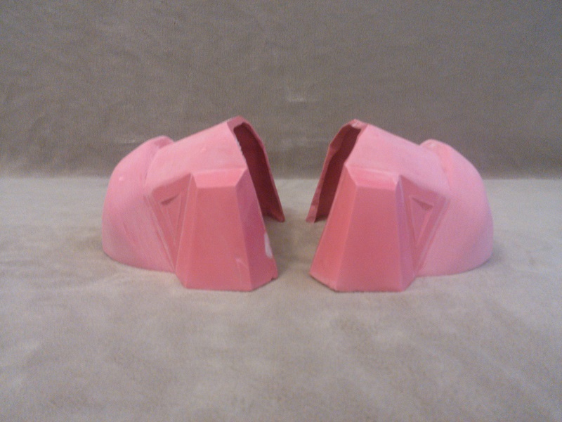 These shoulders were abandoned. They became warped by the time I decided to slush cast them. This was a good thing, because they were actually too small.