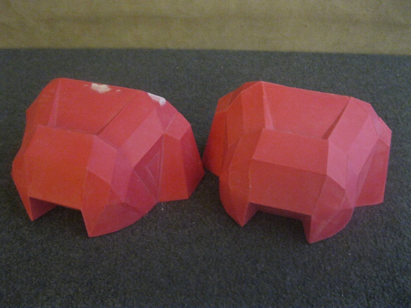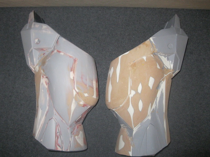 These are the slush cast shins that were created from the Pepakura models described before. They were in the process of being smoothed.