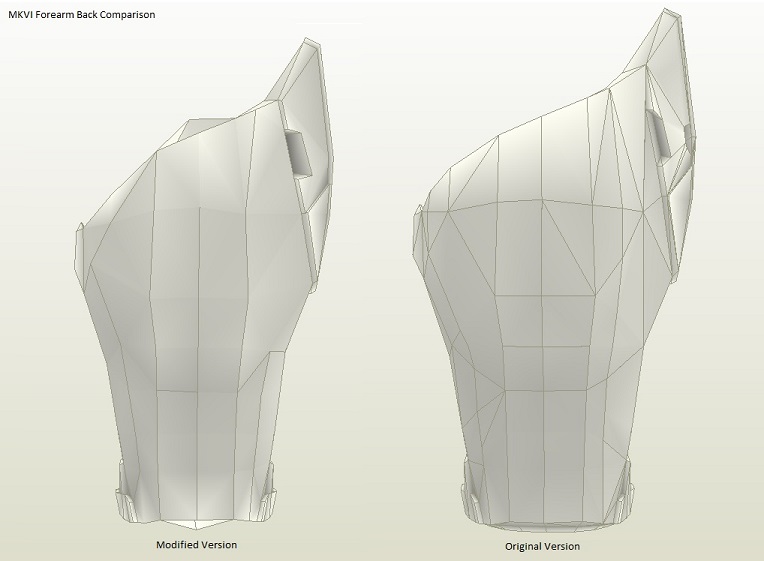 This part is the first part I tried smoothing with the sculpting epoxy. Since it was my first time with this stuff I used too much material. I even put some in places where I did not need it. I have a lot of sanding work ahead on this one. Luckily, I haven’t started on the other forearm yet. This will allow me to fix this one, and match the next one to it. I did test out how well this stuff sanded with 80 grit paper, and it wasn’t that bad. You will also notice there are pits on the sanded forearm all over the place. These were bubbles that formed after the first coat was cast for this part. They were not visible until after I sanded the parts.
