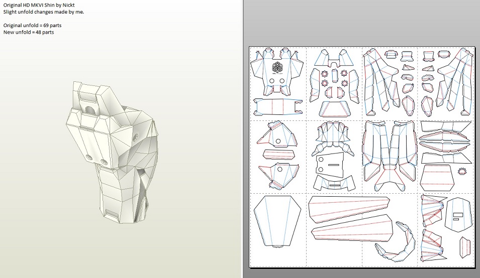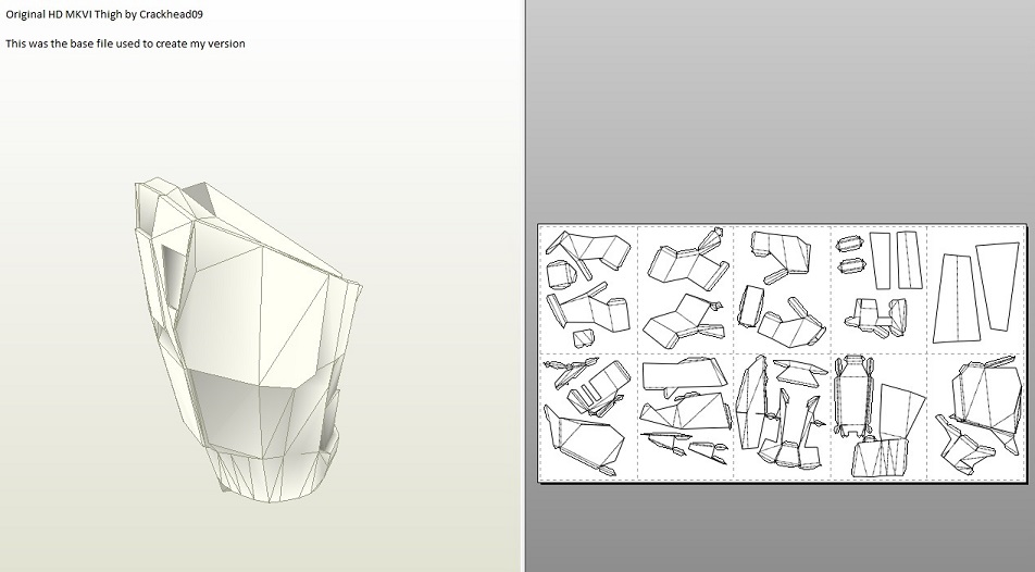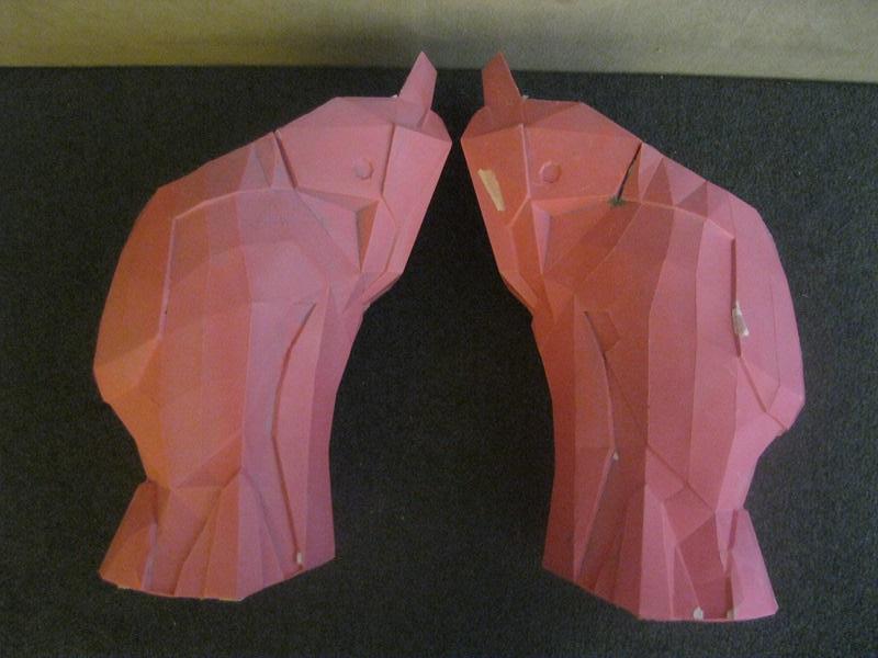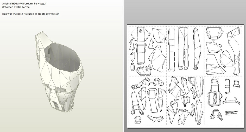 The method I chose still uses Pepakura as my base, but many of the methods beyond that would change. I decided to use plastic instead of fiber glass after I noticed a few other forum users doing the same. After I made that decision I had another idea. I began to wonder if it was possible to use a hardened Pepakura model as a mold. I searched for a long time around the forums and on the internet, but I never found anyone using this method with plastic. Most people who used plastic and wanted to get rid of the paper would just sand it off. The closest I came to finding what I was looking for was this method.