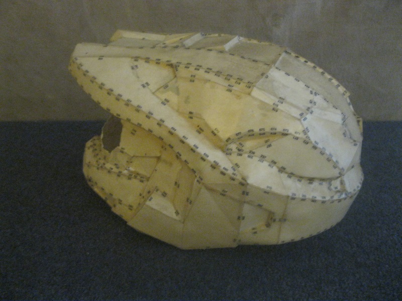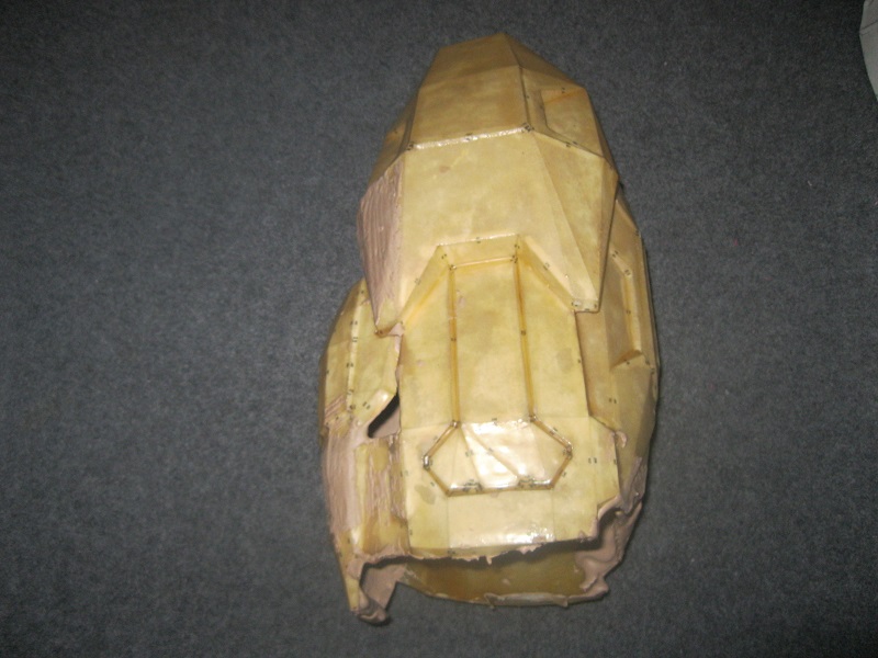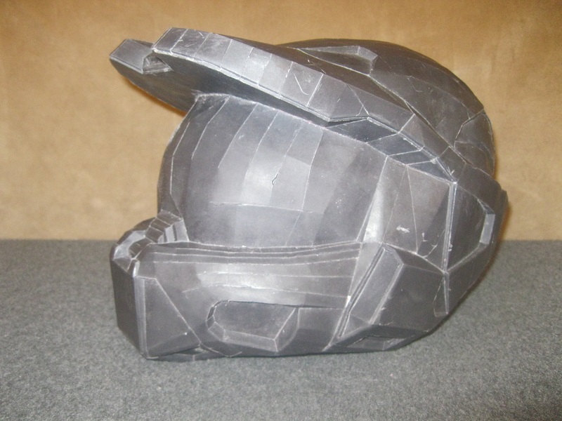 This is the helmet I used as a test for myself. It was the very first Pepakura model I ever built. I did build a HD helmet after this, but it got thrown away. It was too big. Helmet_1_zpsc8c7563f.jpg