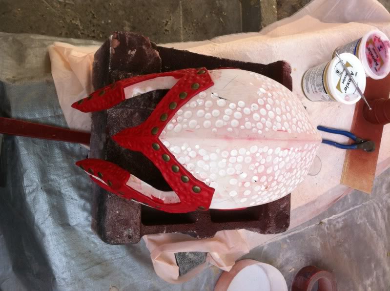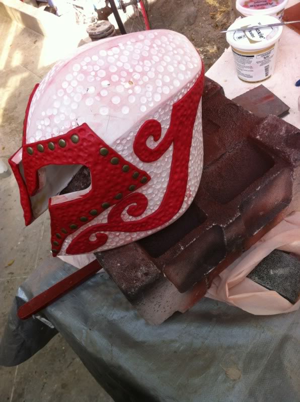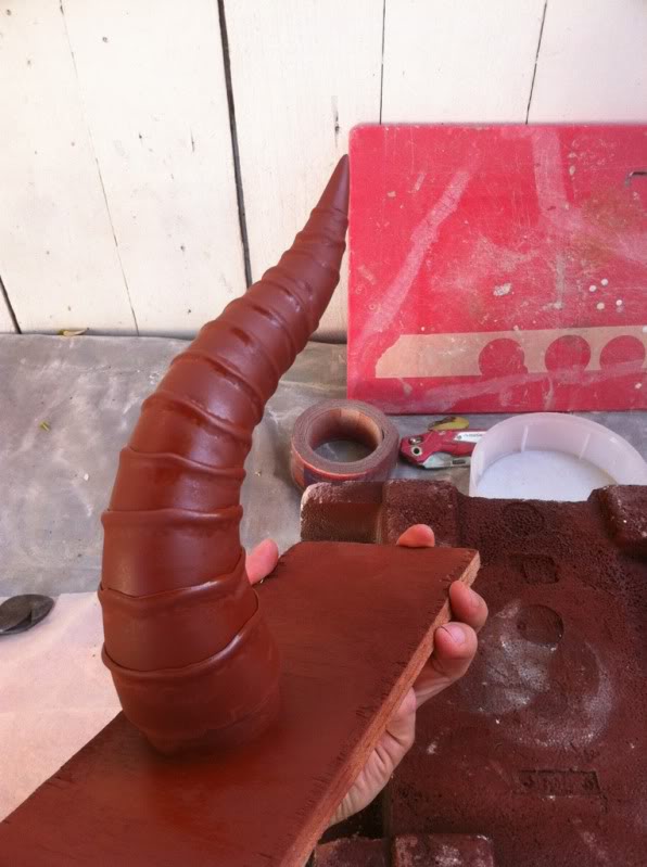 I taped off the holes for the horns, I'll add them later, but smoothing will be easier this way: