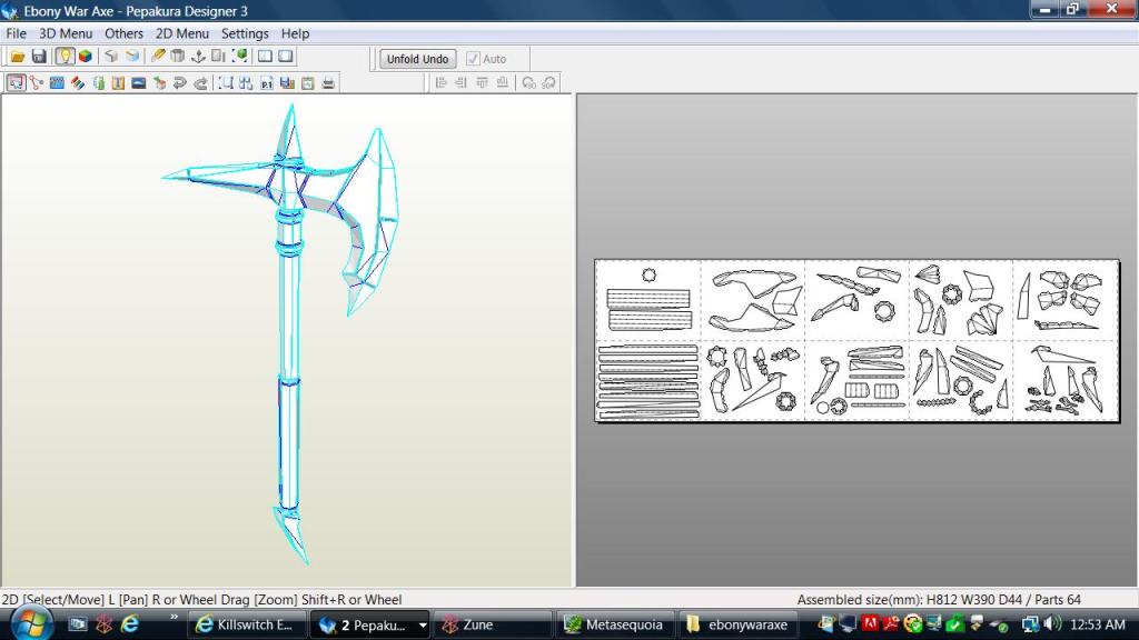 Actually, it might work out like that. I haven't tried layering yet. I just enjoy the pepakura process, and swords won't be that hard to build. I'm slowly adding the correct measurements so everything is the right size in real life. I've already created a greatsword based off a buddy's file. Check out the picture.