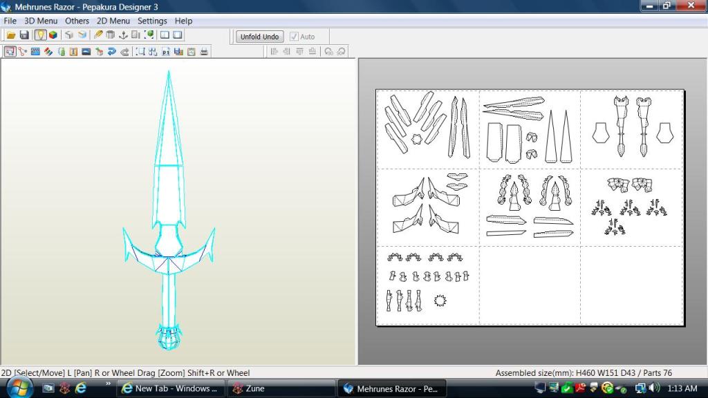 Here is the test built Mehrunes Razor. I enjoyed building this one, just a little on the difficult side. I would recommend building the pommel first, then working your way up to the end of the blade.