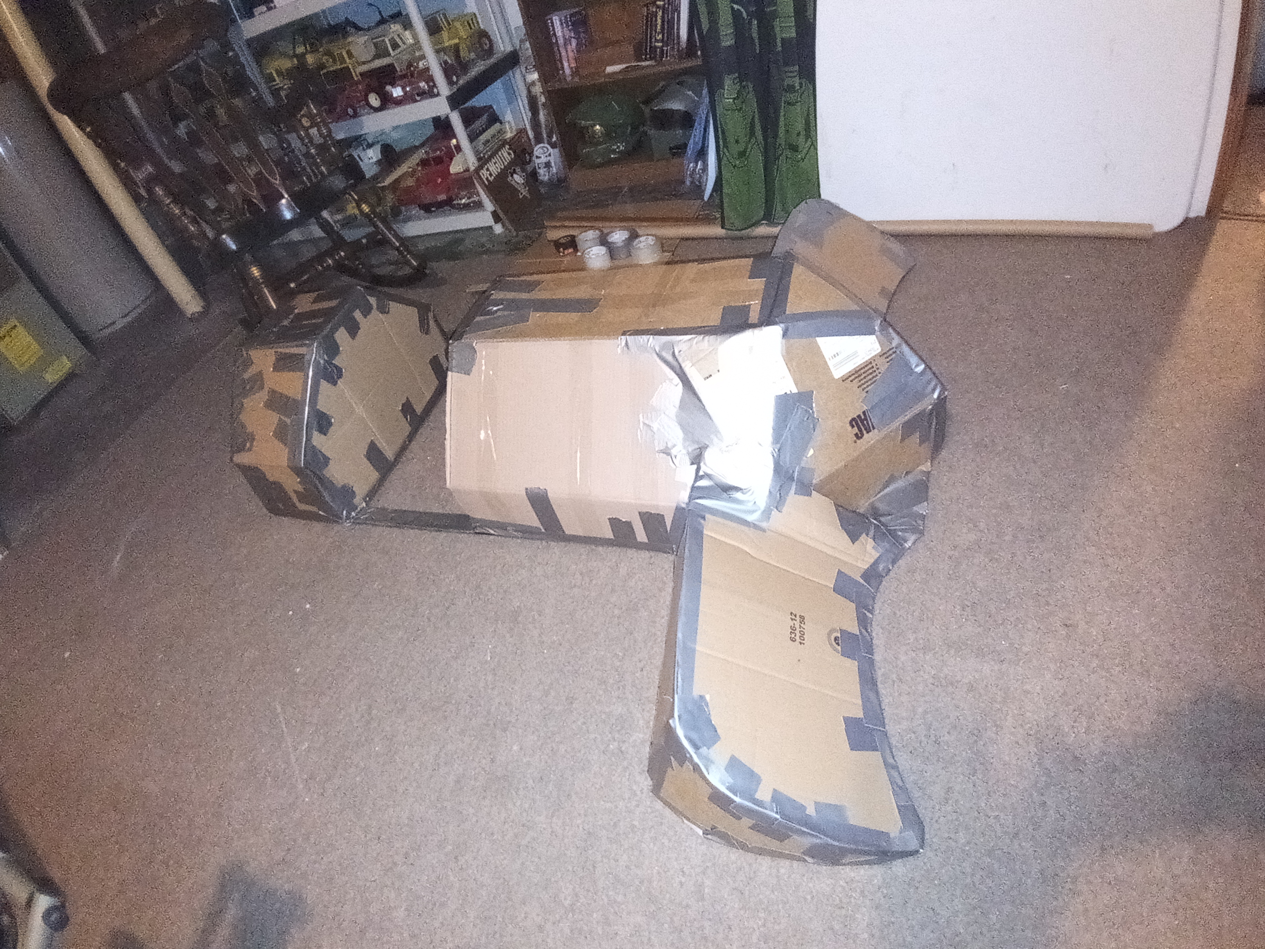 I have decided to do my first costume Ghost out of cardboard. When completed, the wearer should be able to be in full Spartan or ODST armor and slip it over them. With the suspenders attached to the ghost, the wearer will give the appearance that they are riding inside the ghost. I will also have handles inside to help balance the ghost and make it look like you're driving it as well. Any tips or suggestions is well appreciated.