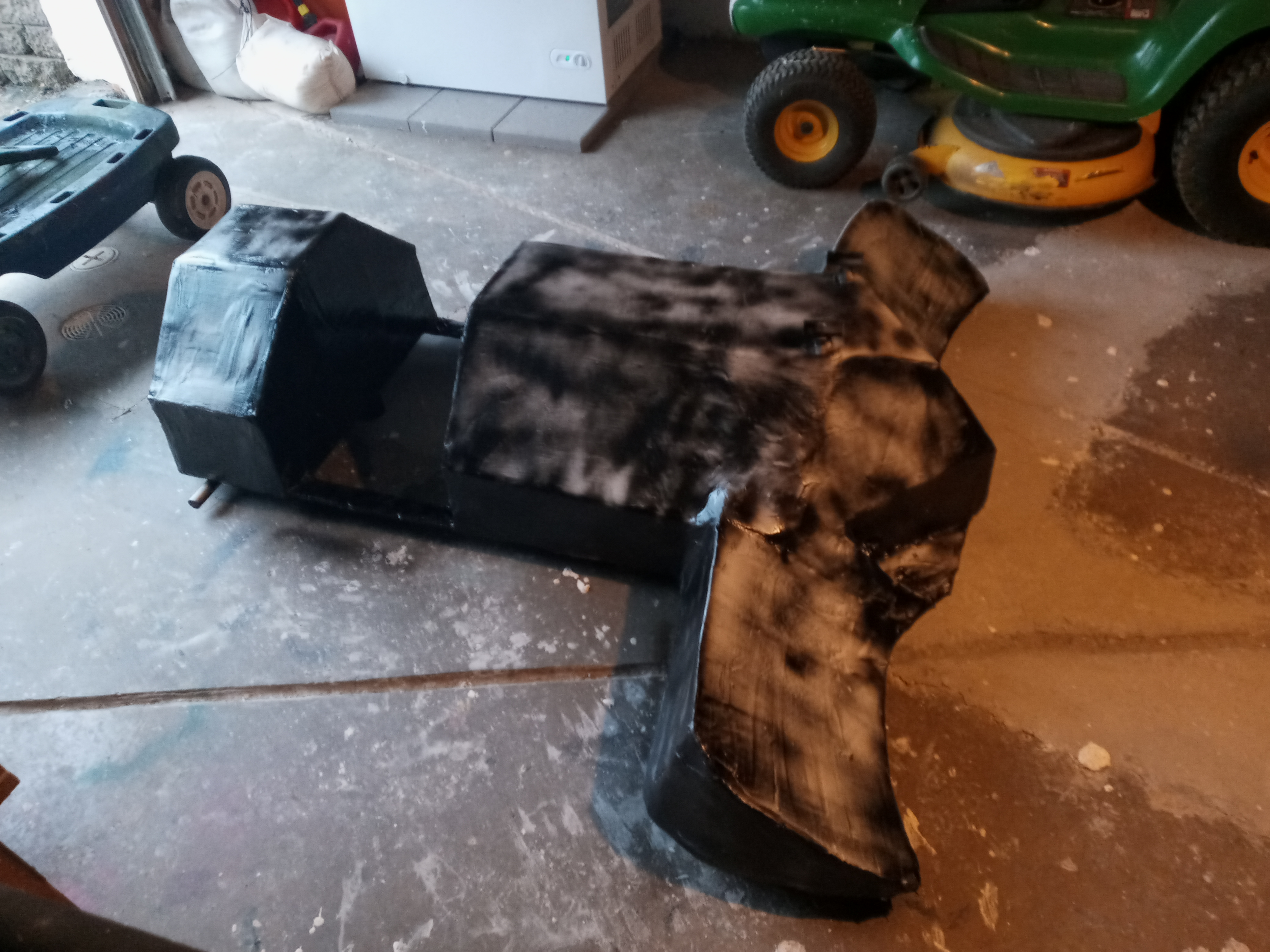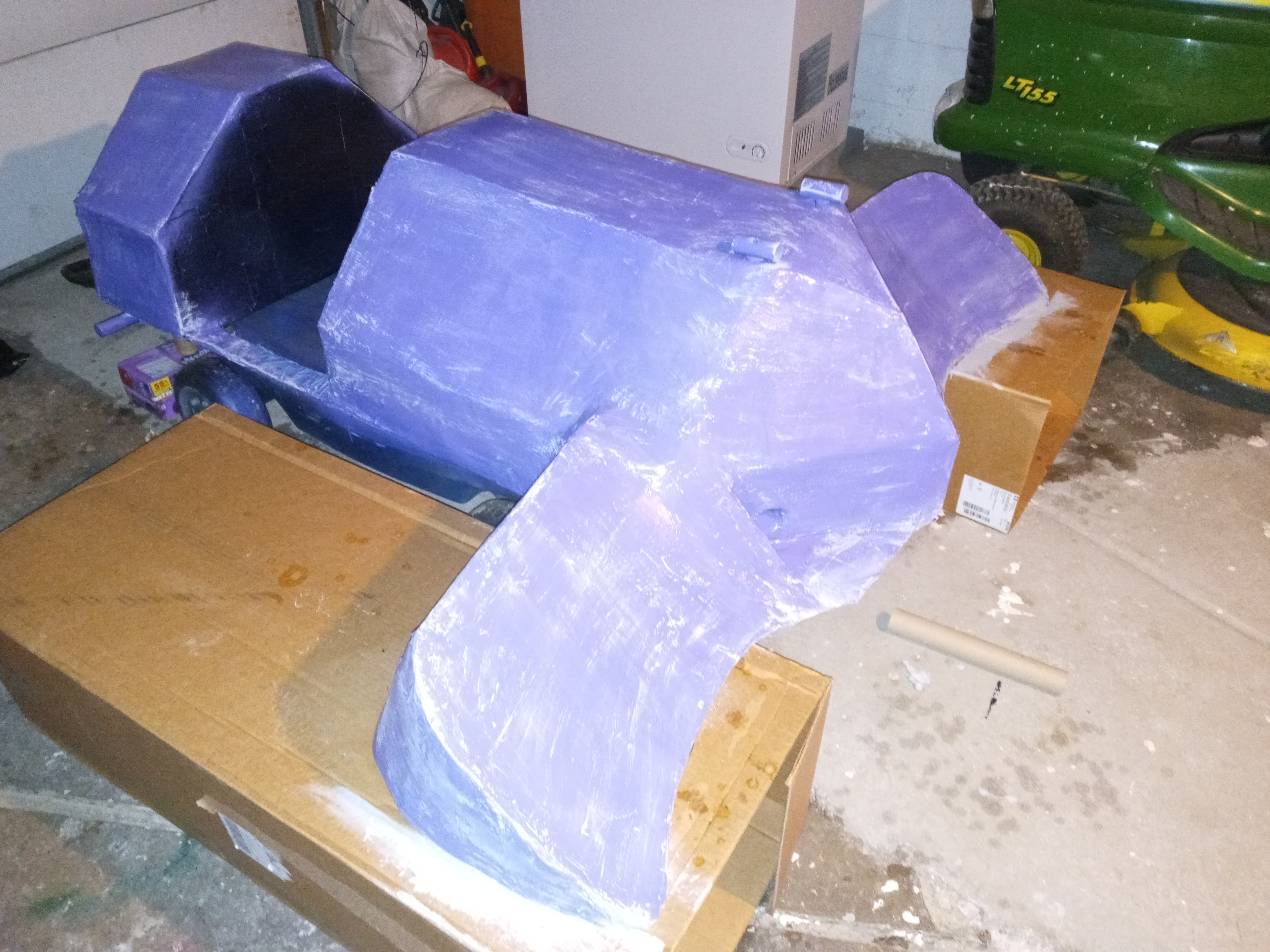 Siliconed the front half of the ghost. It'll take about a week to fully dry. I'll do the rest of the bottom with silicone but I will need to find something better for the top to give a smooth appearance. A buddy was suggesting that I use fiberglass sheets. That would allow it be more mold like. Not sure. Trying to keep total cost under $150. That way if someone else wants one it'd be reasonable to make both for me and for them. Still planning on other vehicles after this. Warthog maybe. That's on the drawing board now. But anyways, any suggestions on what to do about the top? Was even thinking of using that fatigue foam. I want to keep the weight down being that the wearer will be responsible for holding it up.