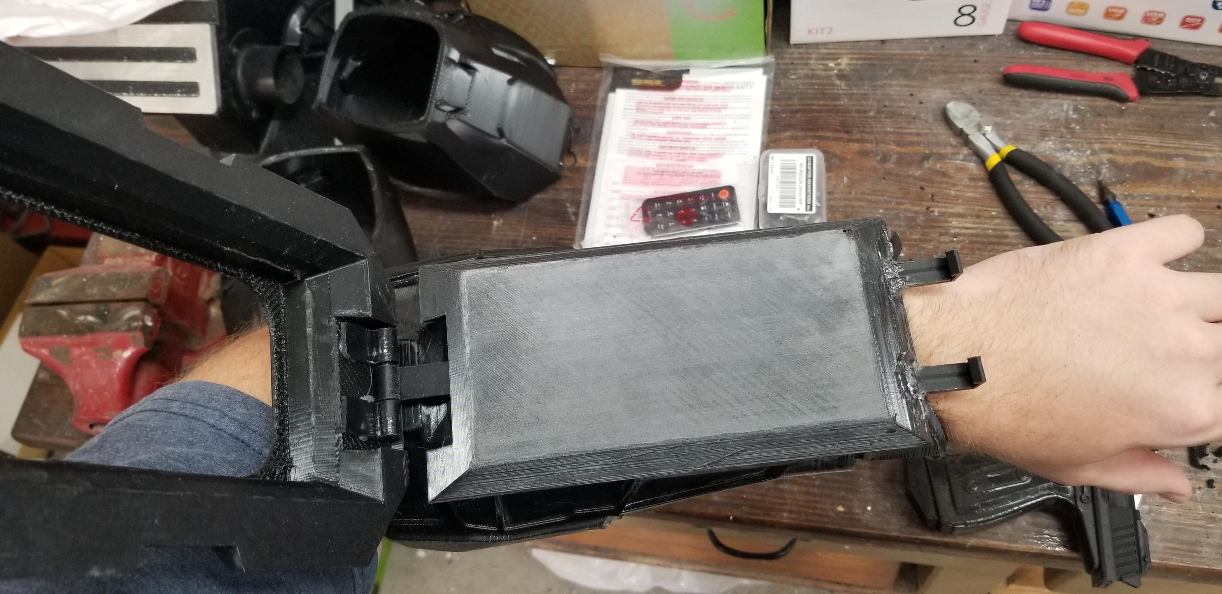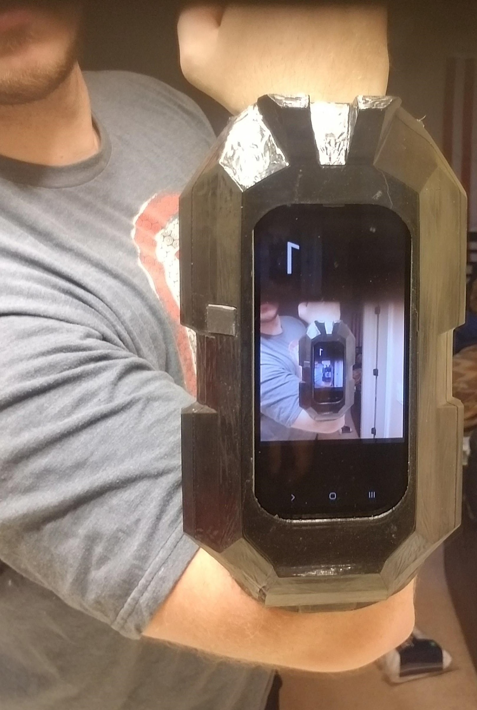 I managed to get my phone holding case printed and assembled, after some problem solving with hot glue and a dremel tool, I was able to get this to work. Luckily I also found some nuts and screws that I kept after taking apart an old computer case(Like I had these screws in a tool box since 2010 or something, ironic considering the anniversary of Reach and what my build is) and they just happen to fit the nuts I had. They also allowed me to drill holes that would hold them tight, so now I can remove the phone holder from the arm piece whenever I need to, no permanent gluing on this one.