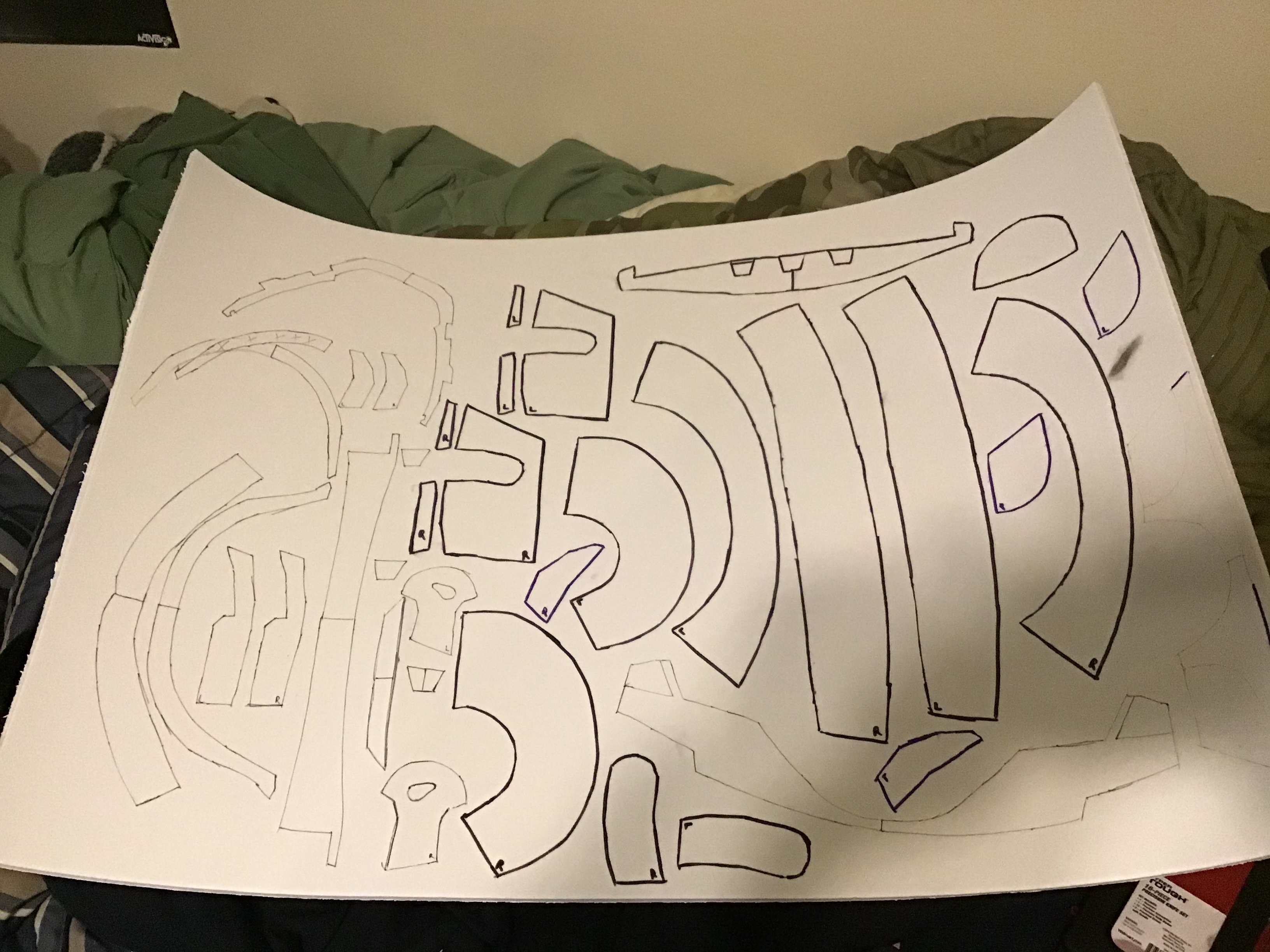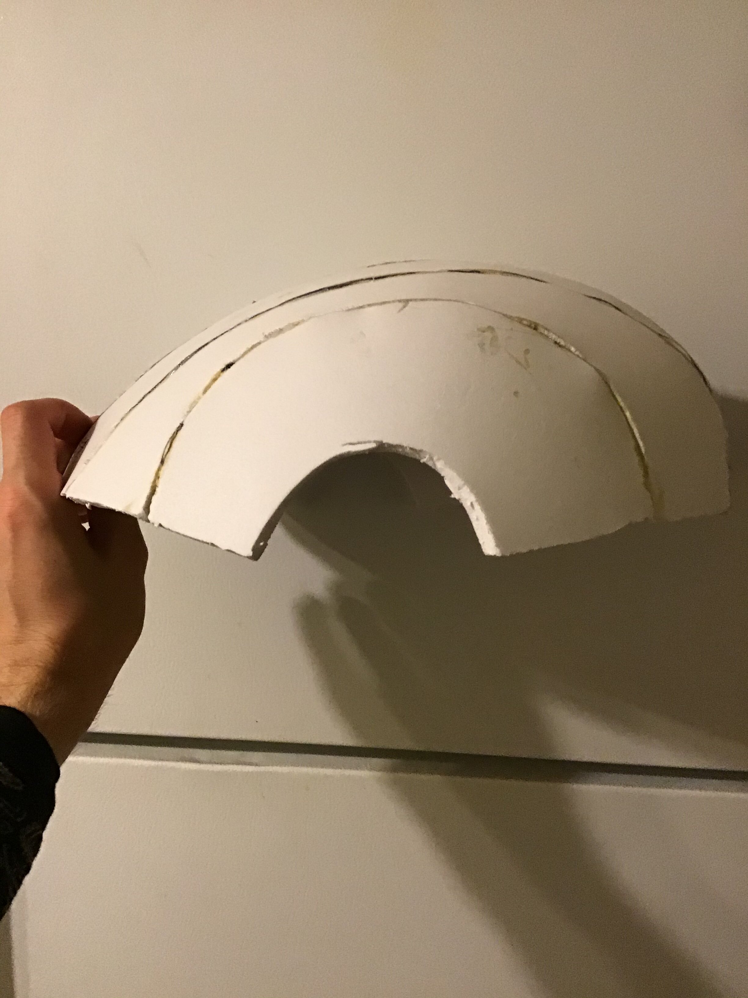 They look fine. Overall you're going to want to focus more on the joins at the edges of your pieces and at the outward facing joining surfaces (there's a few points that pucker and pull the foam inward). Just be sure to take your time and be firm but gentle when pulling foam into place for assembly. Pre-forming either by rolling or by heating and forming the foam into a curved surface will greatly help on those arcs.