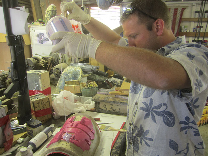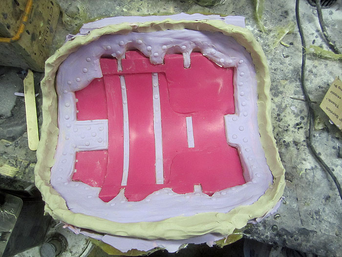 Over the top of the helmet I started sculpting the separate panels in clay: