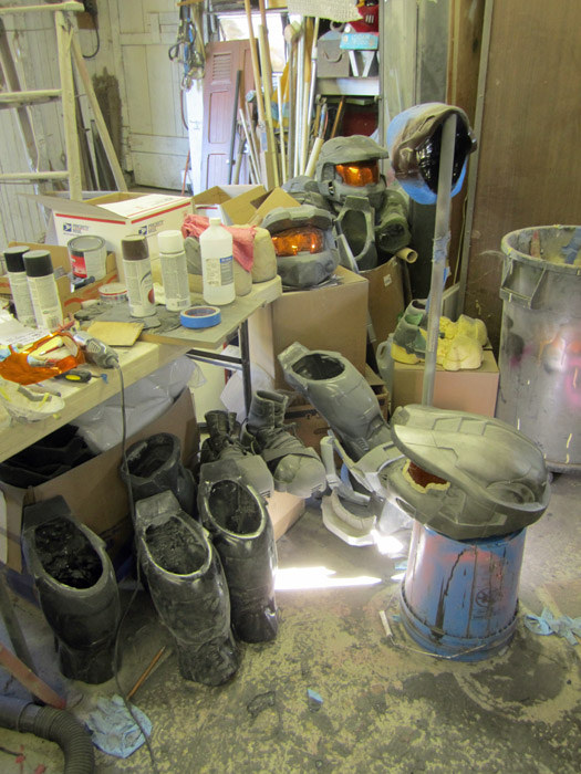 Insteady I got back to work on my hodge podge frankenboots. They're made using a foam cast of the soles from my old failed molds, resin casts of the heel cup, a section of corrugated hose, and oil-based clay to hand sculpt the sections I couldn't cast. I managed to get into full tunnel vision mode, so I didn't realize I hadn't eaten anything all day (or night) until I stopped at about 3:00am. At that point, they looked like so: