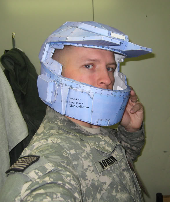 I had a bit of down time over the past couple of days here in Afghanistan, so I scrounged up some cardstock and printed out FS's Mark V helmet (the Halo 3 version):