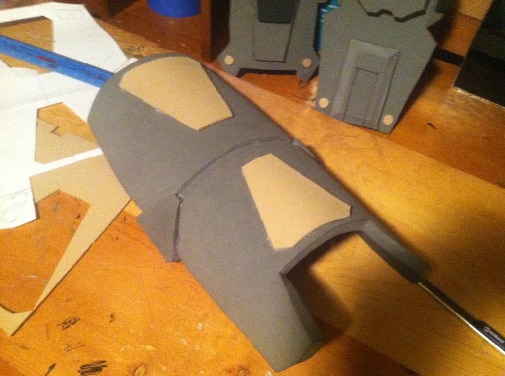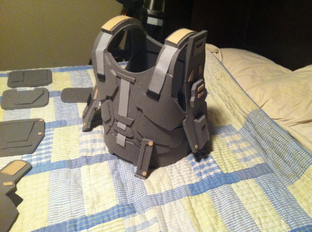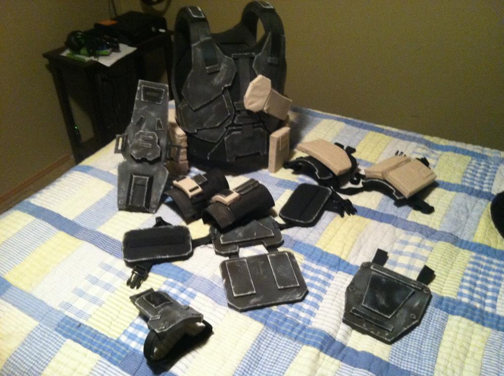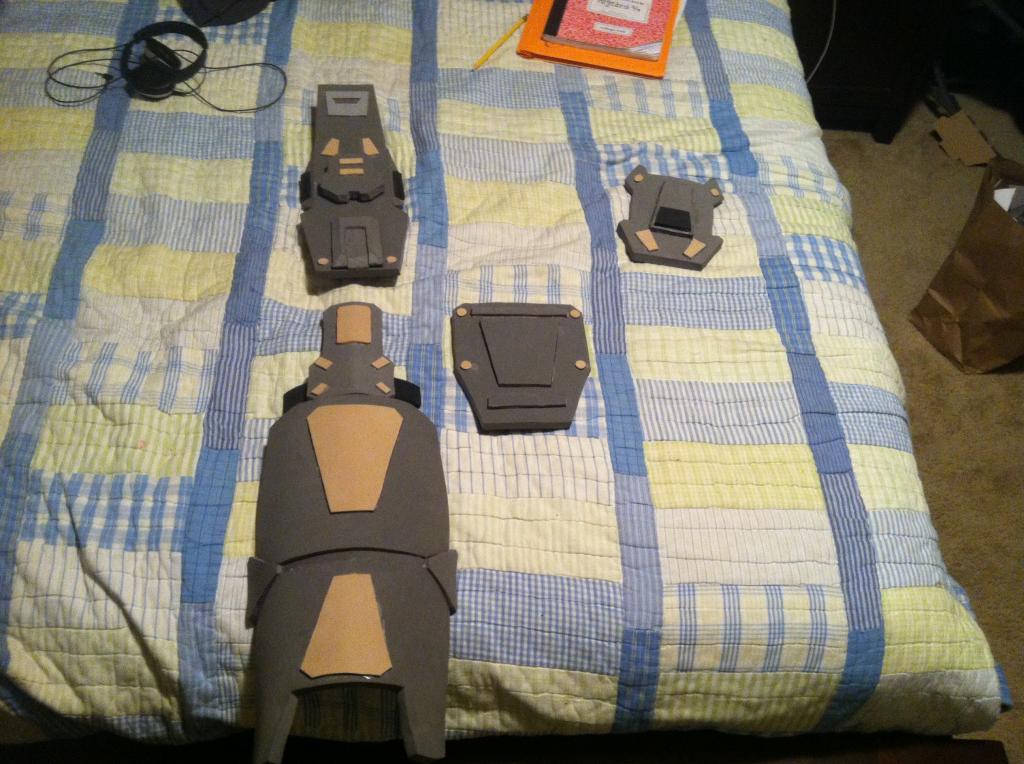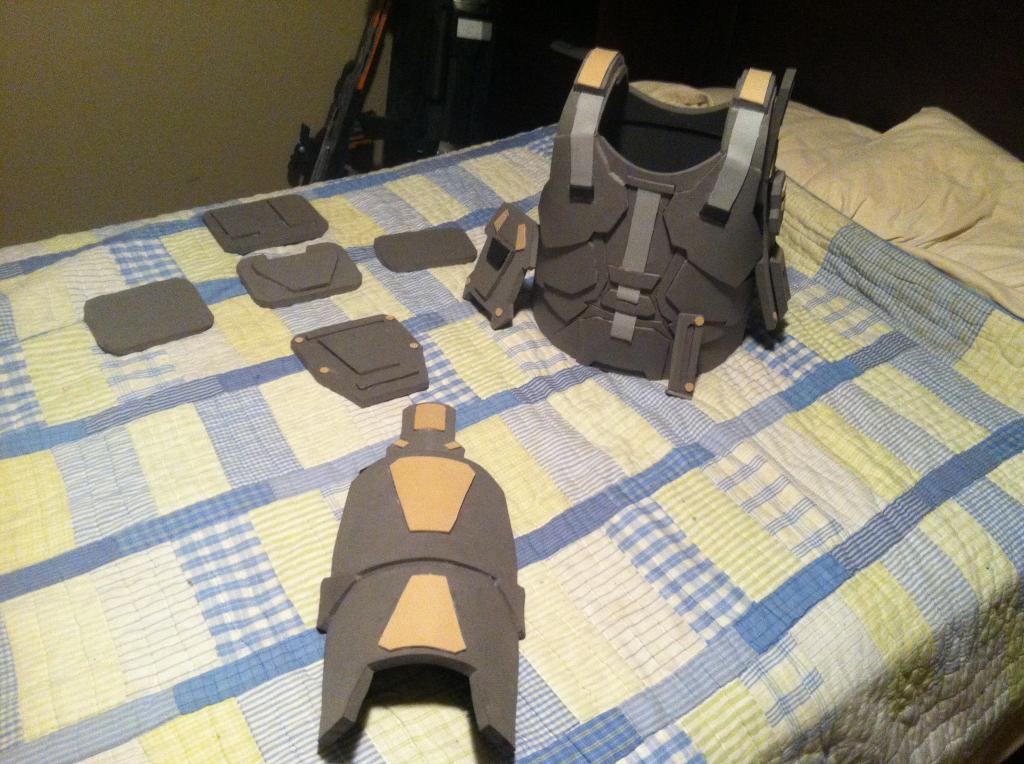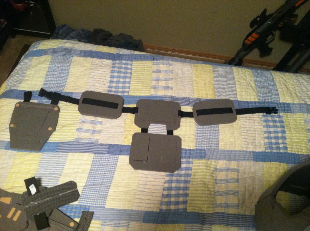 Here are the completed shoulder pads except for the strap to keep it on my arm: