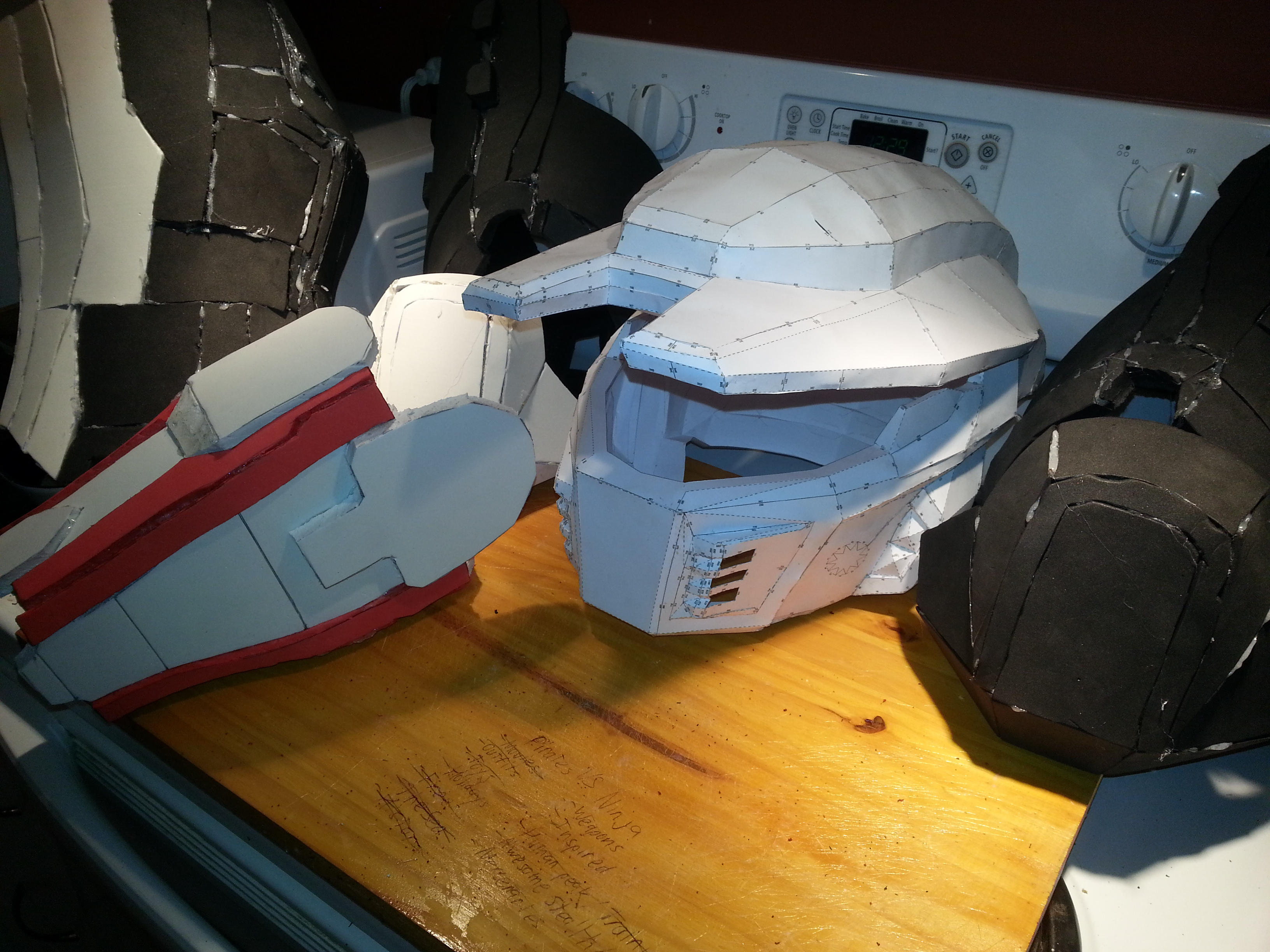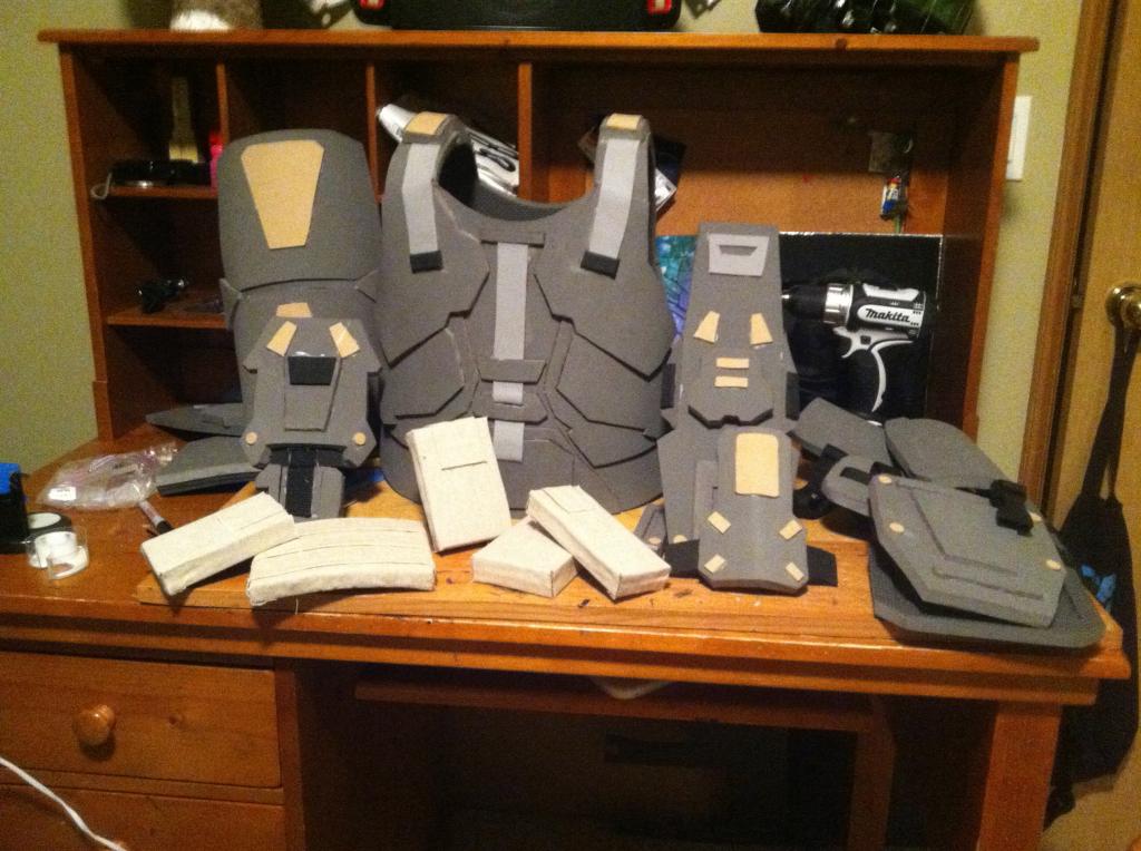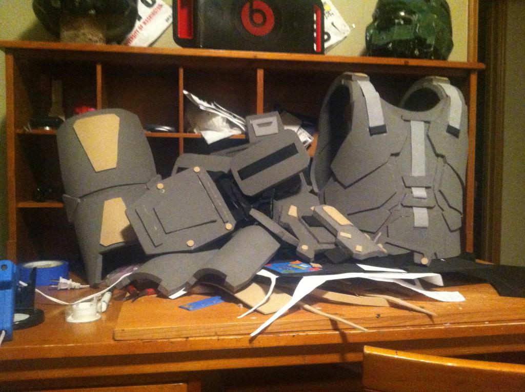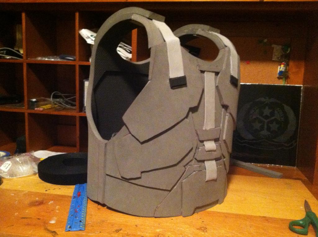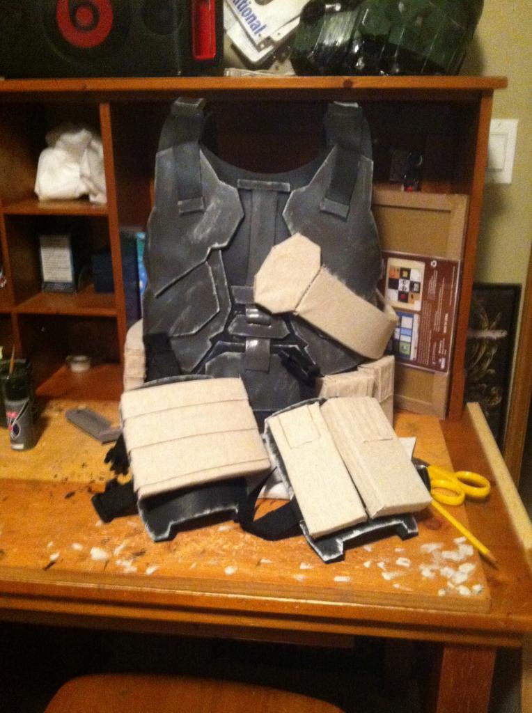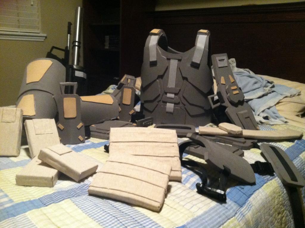 Here are the completed shoulder pads except for the strap to keep it on my arm: