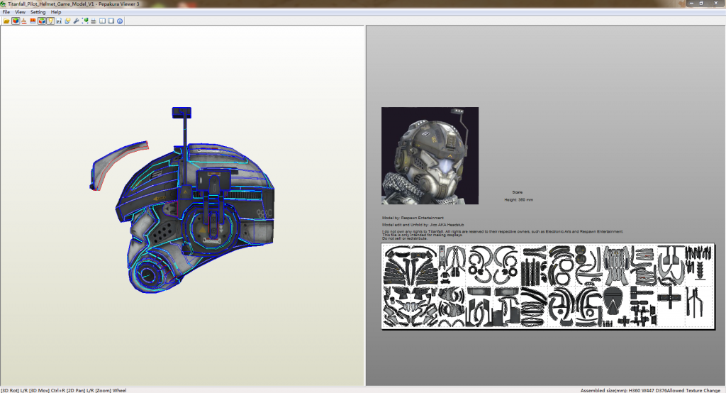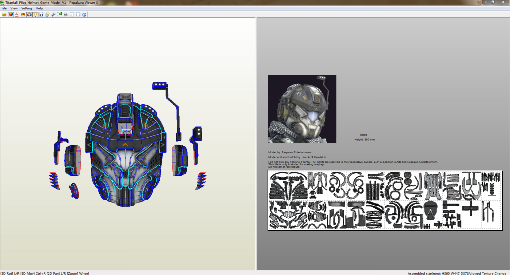 Yeah, that's pretty big. I was able to get my hands on the decompiled models from the game yesterday. I was a bit on the fence about it since it meant that all the work I did on my original file would become obsolete and some of the people who had already started building my file might start over:/ But the temptation was too great and I started separating the model and then unfolding it. Here's my progress so far.