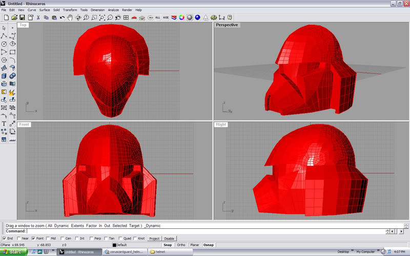 My NEW Coruscant guard helmet is my first Pepakura Designer test. It was modeled in Rhino3D. I used photos of the original for a scaling base, and modified it to change certain aspects of it. So far, though I'm still only in the Pepakura stage. I'm further than where I'm at in this photo, all that needs to be built is the rest of the dome, everything else is in one piece. But more immediate concerns have forced me to put this on the back burner at the moment.