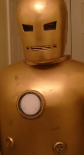 My comic book version Iron Man Mark I. Originally built out of cardboard, fiberglass, and bondo, the original was molded up, and the one you see is the first fiberglass copy.