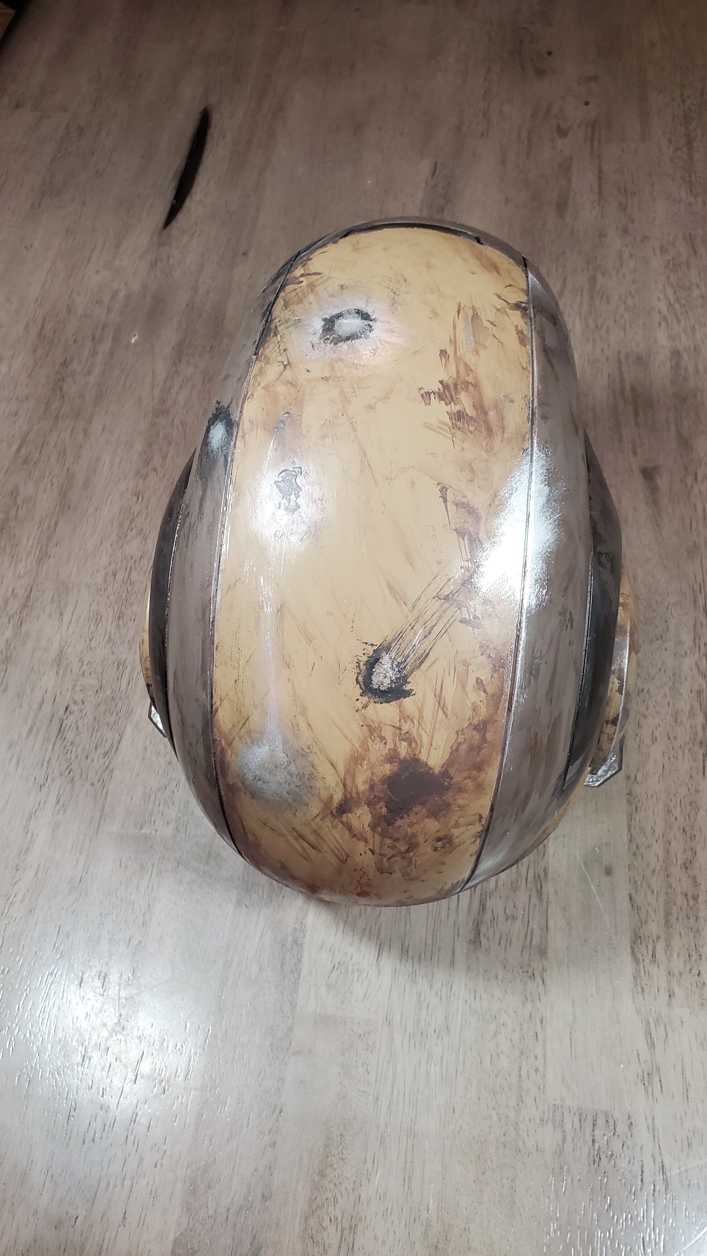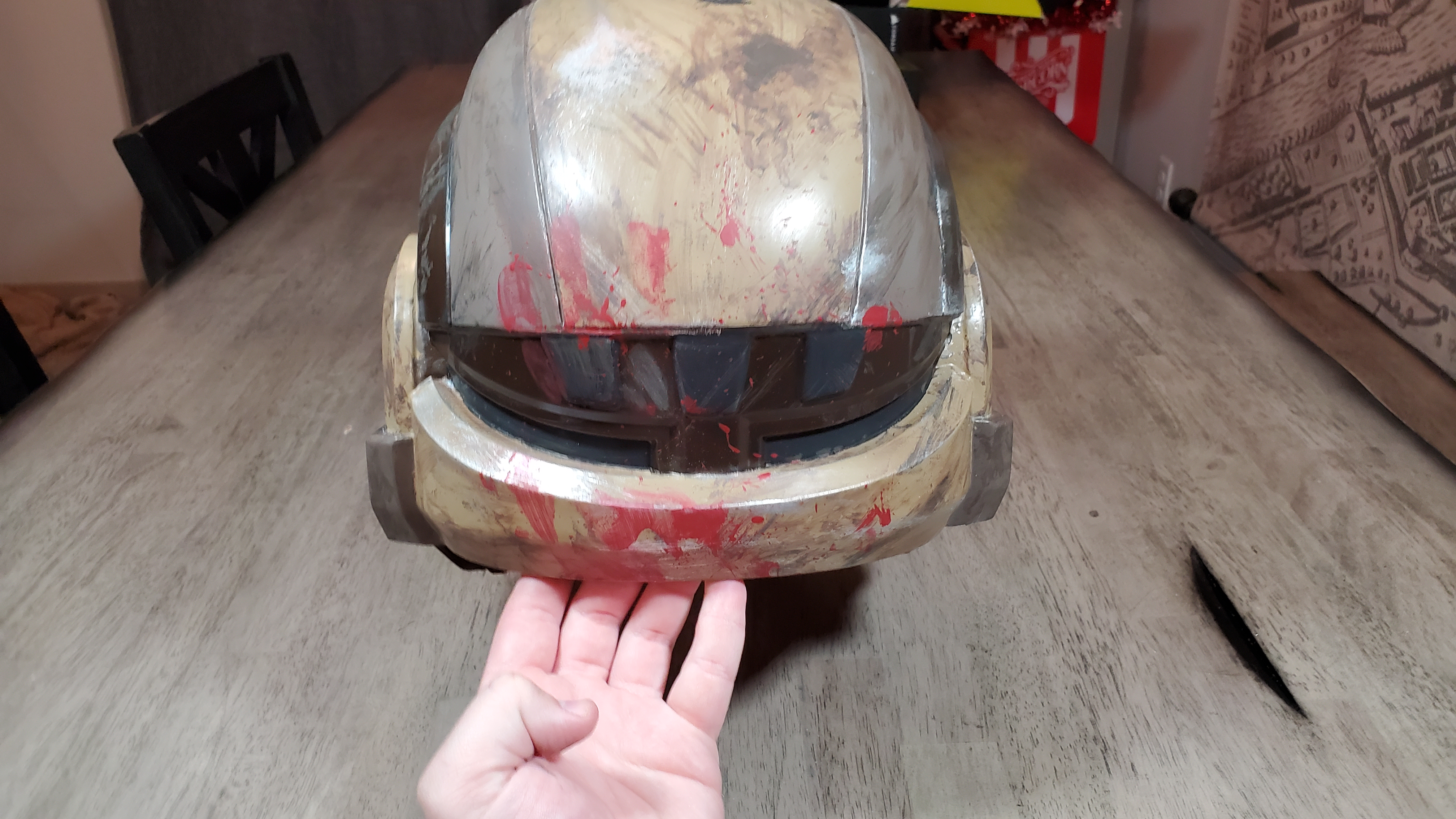 Your weathering is incredible.. The blood is such a nice touch as well.Final weathering finished, all that's left is the black visor and this helmet is done!