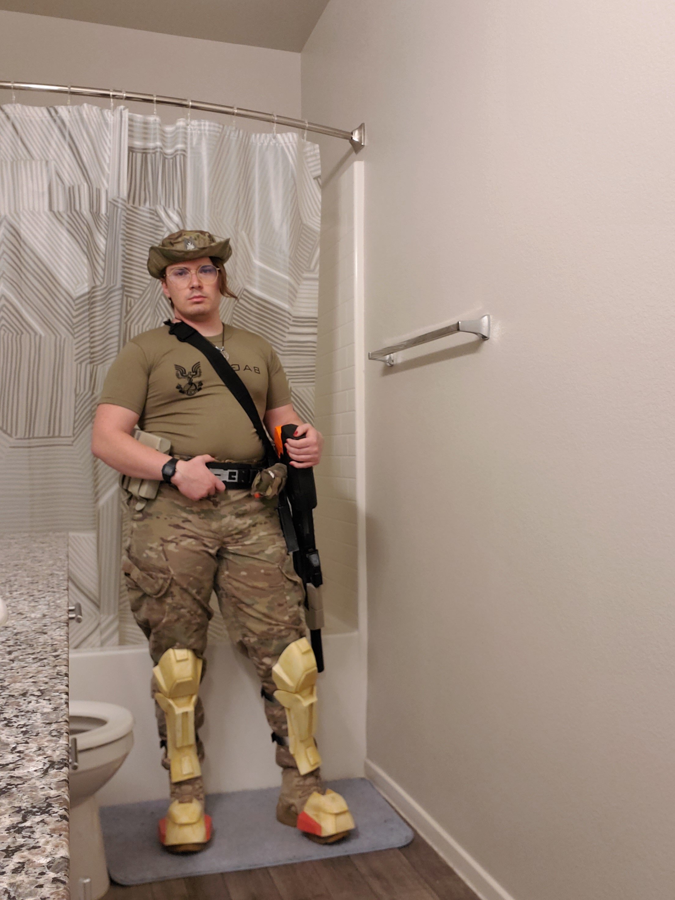 So how it was always told to me by my Js is that the best field medicine is preventative so they would carry the same weapons as the other guys and pretty much take whatever weapon they wanted (Of course everyone had their standard issue M4 but would take other stuff). I was actually thinking about sticking my MK50 to the inside of my left shin with a magnet and putting my knife on the right shin inside as well!So thinking on it, a medic probably wouldn't carry the AR. If they carried anything beyond a sidearm (and let's be honest, an ODST would) it would probably be the SMG, flip a coin on if it's the silenced version or not. If you decided to go that route, the SMG is more than small enough to take a thigh spot, either with magnets or a holster. I would also see them carrying the MK50 Sidekick over the over the M6 series, maybe in a boot holster. Still, your build! Do what you want! They do make a rifle harness that holds the rifle to one side, typically along the leg, but it's more a "I'm out of ammo and need to use my sidearm" type thing, it's not built for comfort. Lastly, I've gotta say, the red nail polish really pulls the look together!