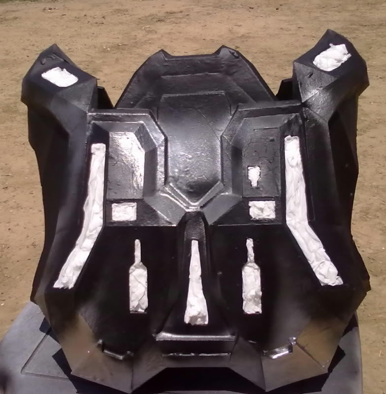 now with the front..i was thinking of actually doing something a little more custom instead of those raised pieces, plus the breacher collar is going over them and even if it doesnt i wanted to do something a lil more ME flared onto it, ill be fiberglassing it tomorrow as well as making the gloves.