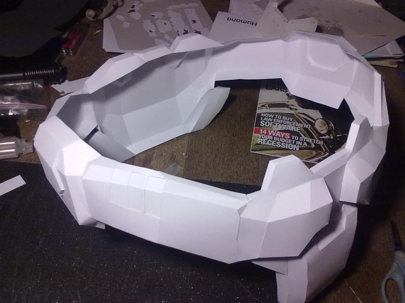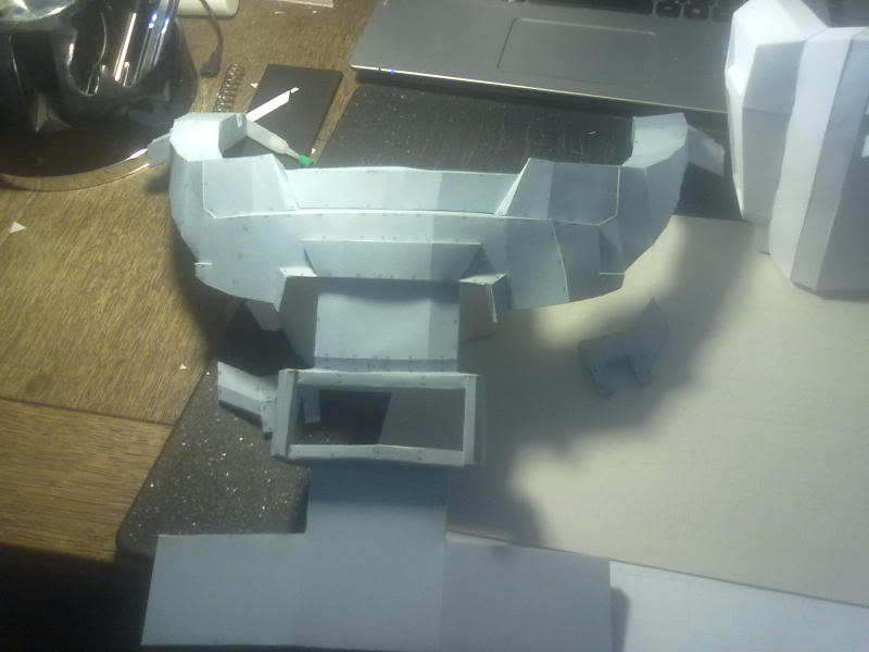 i used foam board just because those pieces on there are too tedious and kept the indent on the curvature in the circular area out, i left it flat so i can connect or drill through whatever pieces ill be using to connect various shoulder pieces