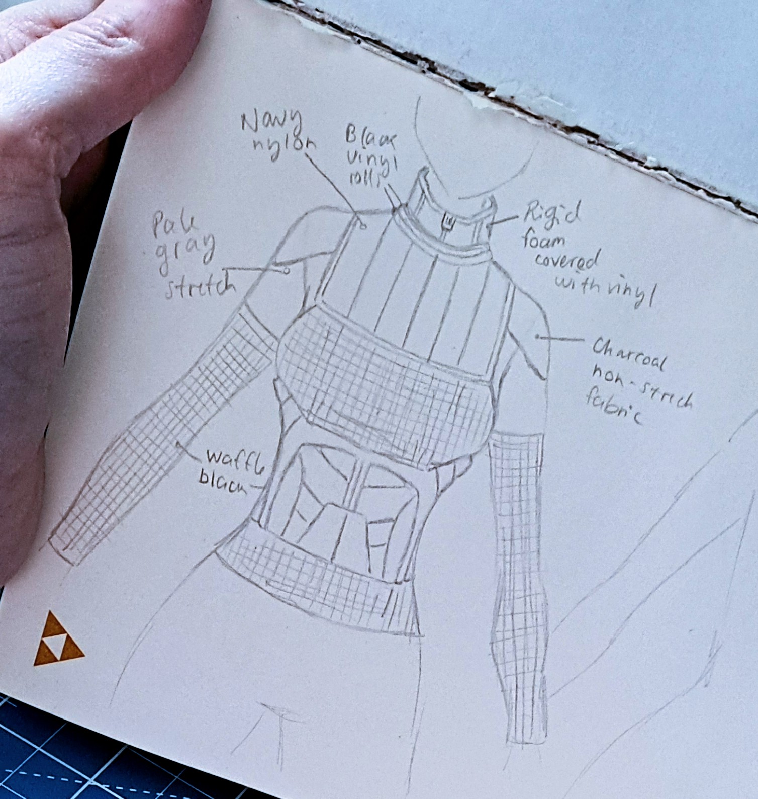 For the base suit, I could tell that the main fabric of the suit was waffle knit. You can see it at the elbows and back of the knees. SO, I got myself a pair of pants and a simple shirt with the same materials!