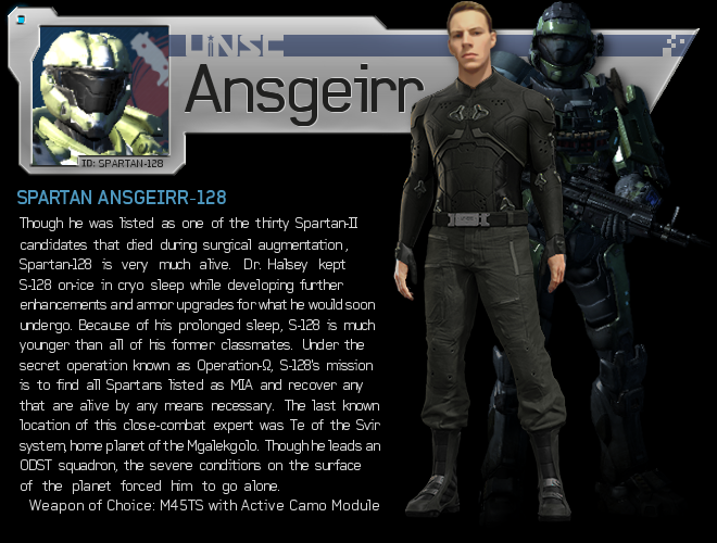 This is everything we have on the individual known as S-128, birth-name Ansgeirr, who was one of the subjects in Dr. Halsey's initial Spartan-II program.
