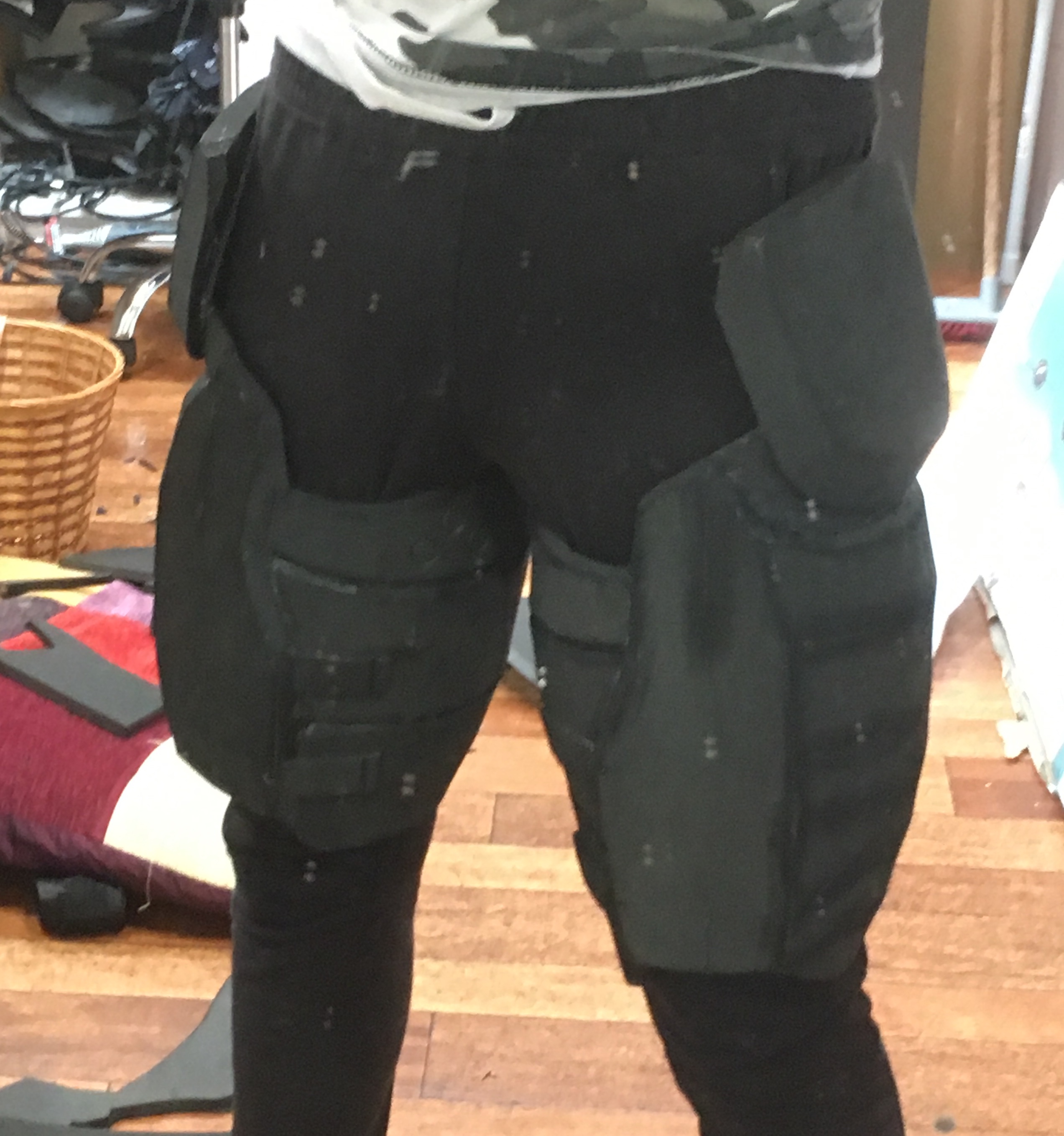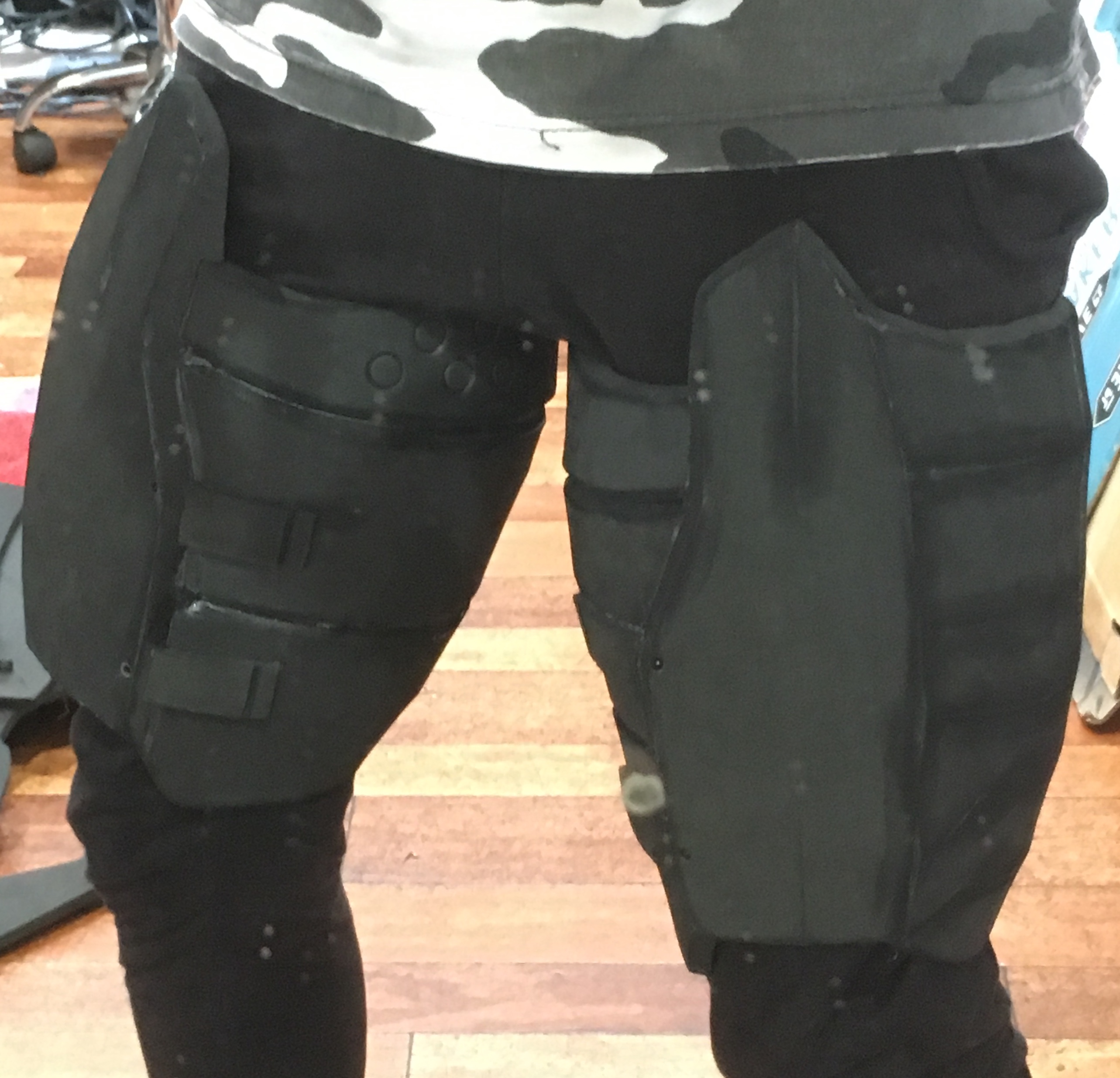 Looking at the reference images and thinking about how i want my suit to work, I decided that the Hip plates should be attached to the thighs, and so I freehanded some hips, because since I altered the thighs the original pep hips no longer fitted.