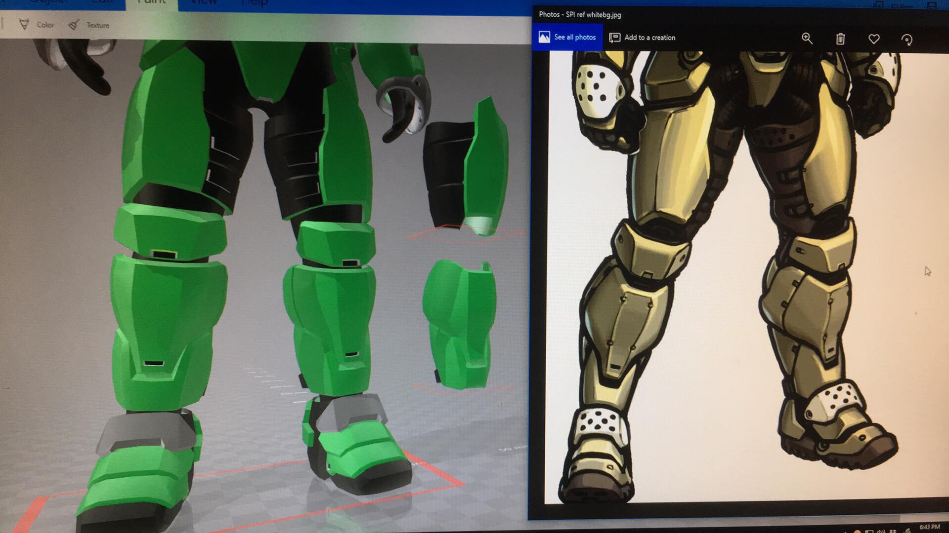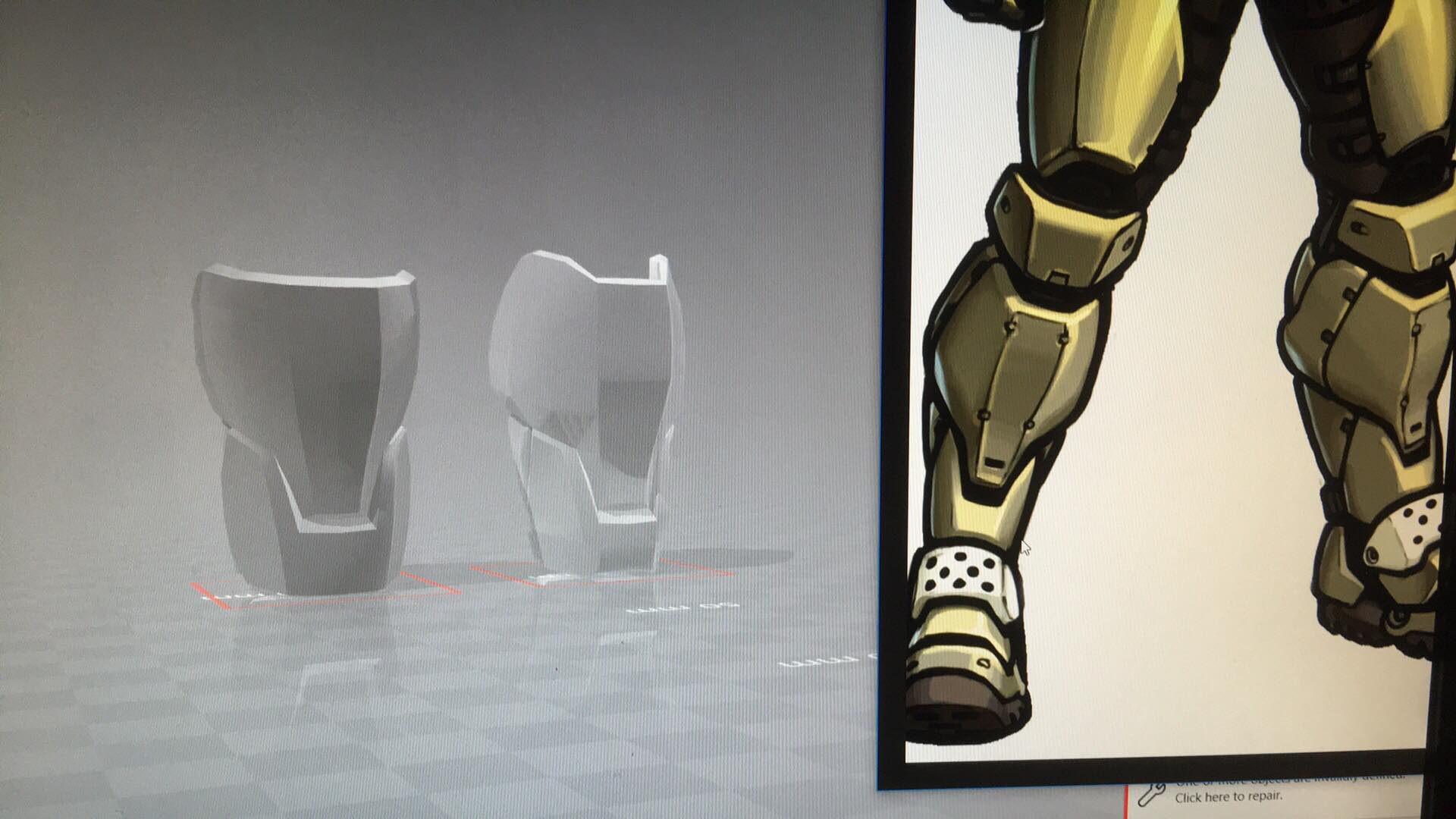 I love the files made by Satchmo III however they dont always perfectly fit my female body, in fact most Halo files dont. So I opened blender and altered the thighs and the shins to fit my leg shape.