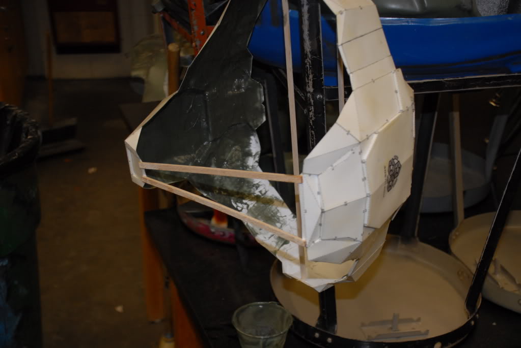 I got back to the school and checked on the front of the chest piece. As I feared it didn't cure over the weekend. In fact the moisture from the rondo soaked into the card stock and ruined the piece. I'll have to pep out a new chestpiec over the next day or two.