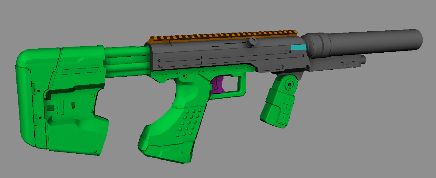 This is...intense. Love it!Worked a bit more on the SMG model today, mostly done designing the trigger, handle, foregrip, stock and how these pieces interact with the other ones as well as making sure I can actually install them where they need to be.