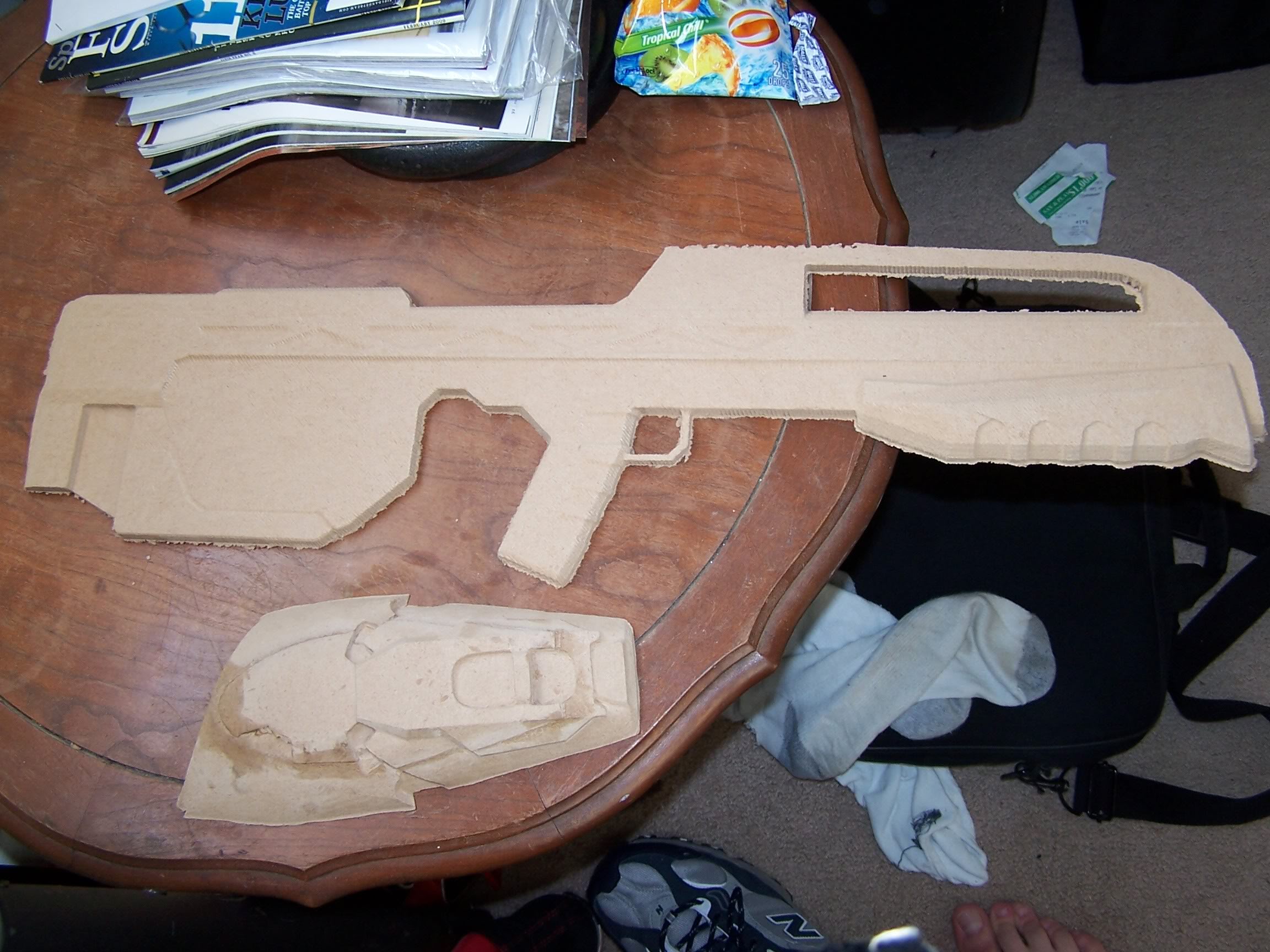 For this project I used MDF as my milling material. It can't hold nearly the detail I imagined it could, but it cheap and abundant. Later down the line I may take a page out of Legendary Armor's book and use a high density urethane foam for milling. I've played around with a couple samples of it, and although the stuff is 4-5 times the price of MDF board, the resolution capable of being captured on the first past is fantastic.