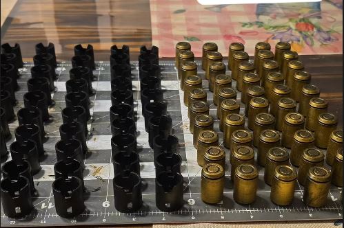 Began the painting process with Krylon Satin Midnight Garden as my primary color. With Slate, Deep Gray, and Flat White/ Flat Black as accents. Throughout the process I did encounter a bit of " orange peel" or "crazing." Primarily on the thigh plates and a little on the gauntlets. I live in Arkansas where the weather is never the same for more than 2 days and its always humid so... I decided to let it be and make note of it for next time I decide to make a suit.