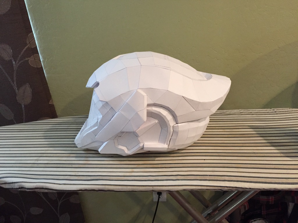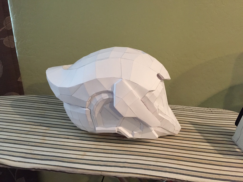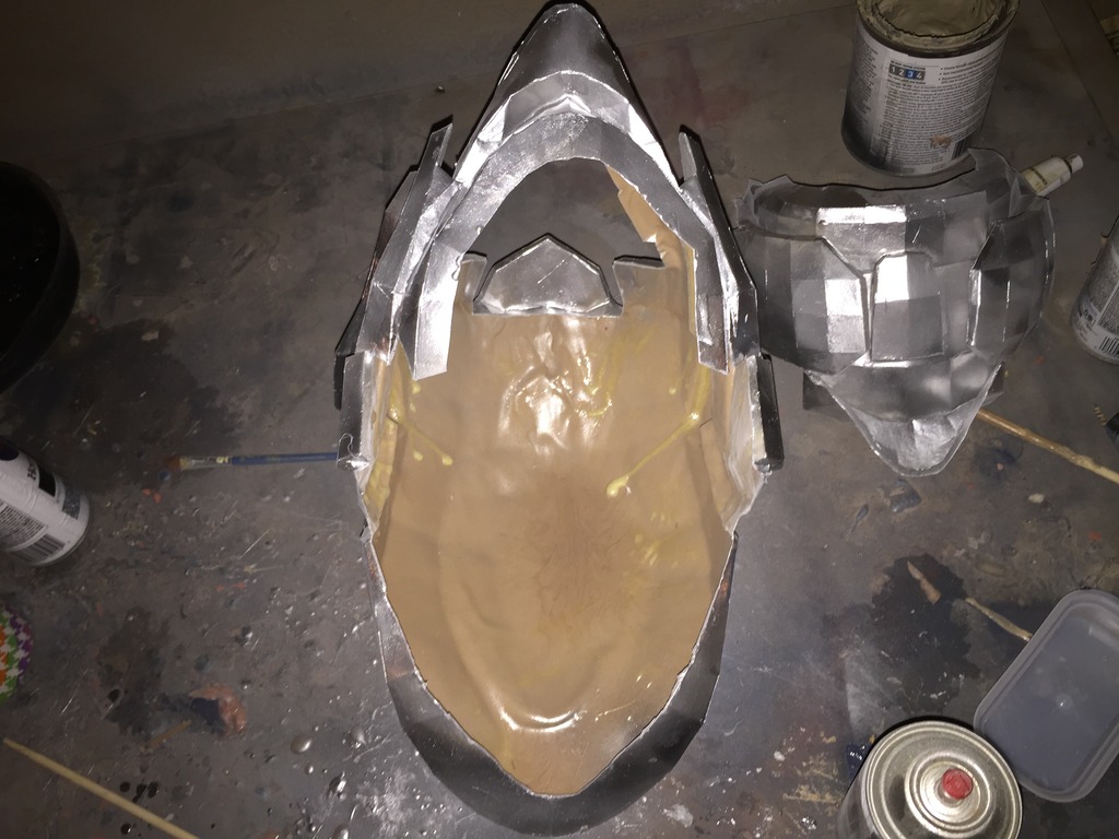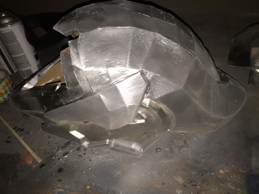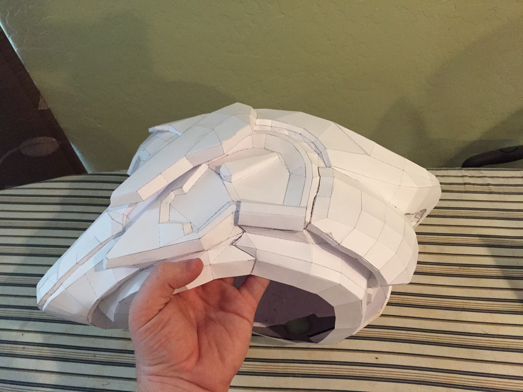 Finally on to what I have done with this project. So far I have my helmet assembled and resined I am just waiting for it to cure. Also for my helmet I sized this perfectly... a little too perfect. This helmet is too small to fit over my head, however it is good if it 'materialized' around my head. Now I do have a plan for the issue of the size, the back has a hinge that makes the back half spits and allows me to open the helmet. and in reverse clamp it around my head. Finally for tonight I have finished my left shoulder and how I just need to Detail and clean it up a bit. Next up are the right Shoulder the forearms and my 'Treads of the Hezen Lords'.
