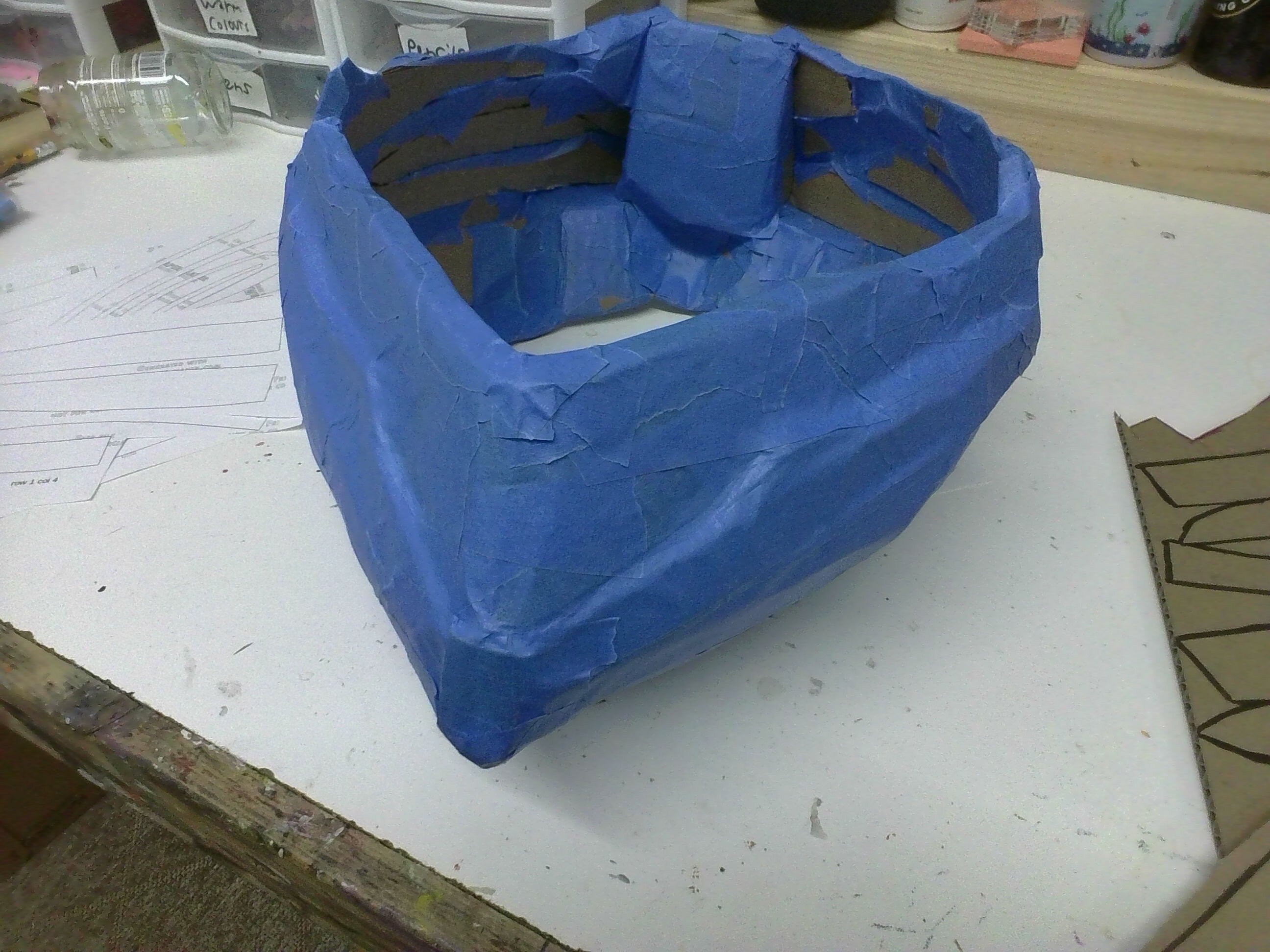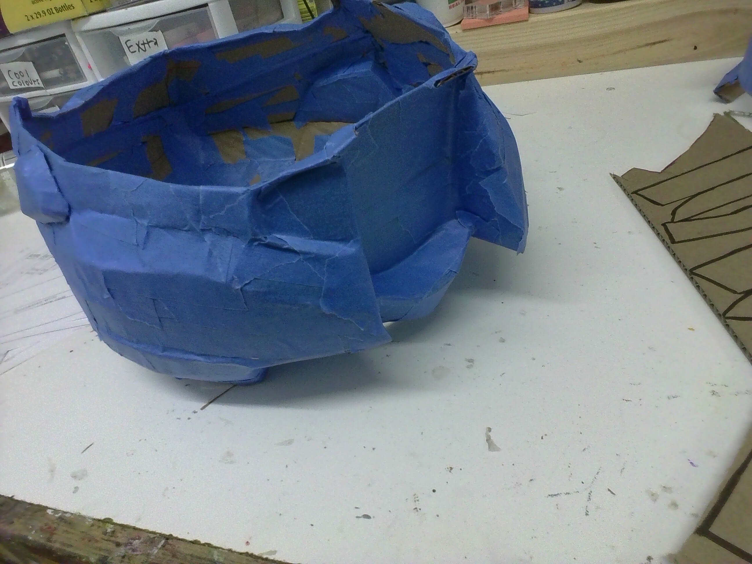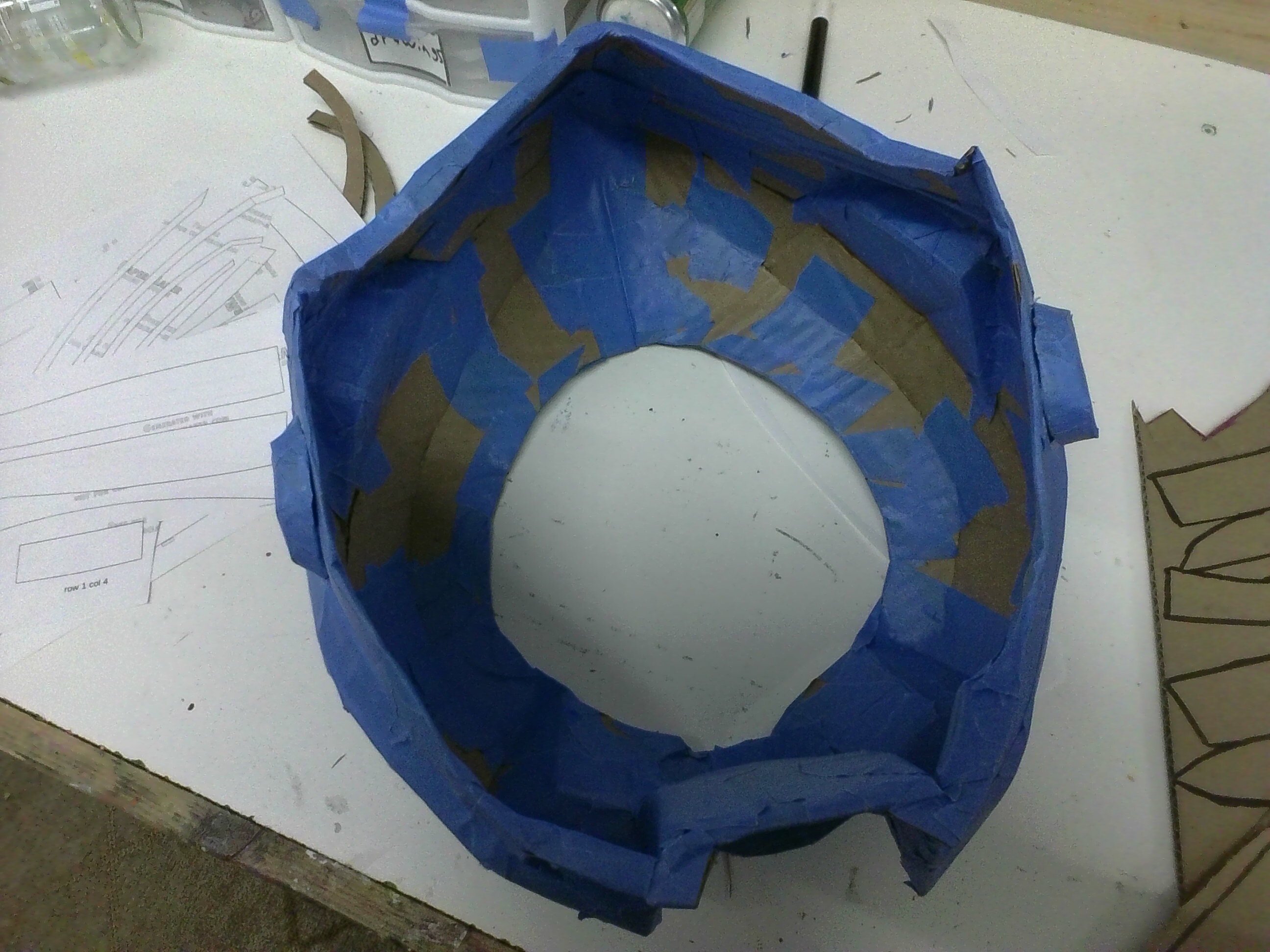 Making the helmet! (I don't have a 3D printer and I don't want to waste my foam on it, so I am using cardboard and masking tape with some tacky glue